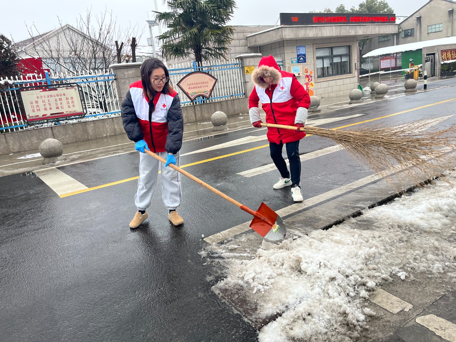 活动中,只见红十字会志愿者们带上铁锹、弯着身子,握着扫把,抡起铁锹,挥着雪铲,除雪的身影坚定稳健,全力清除着道路上的积雪和暗冰,大大方便了行人车辆安全出行,也使辖区道路环境卫生更干净。