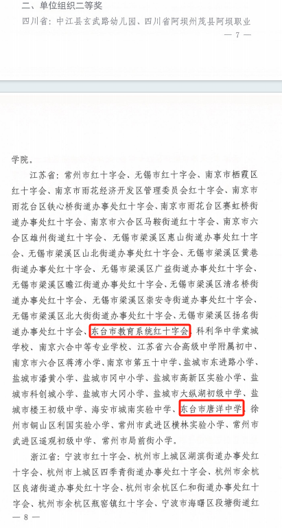 [盐城市]祝贺东台市教育红会、唐洋中学获红总会表彰