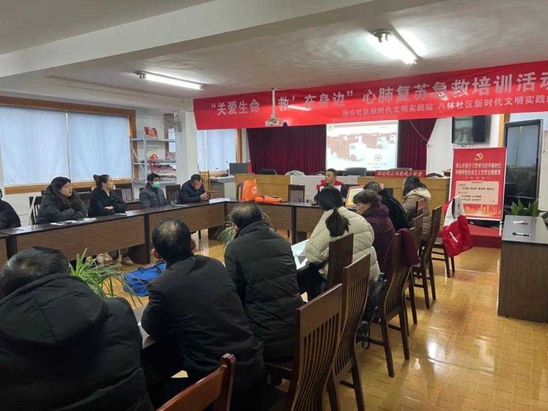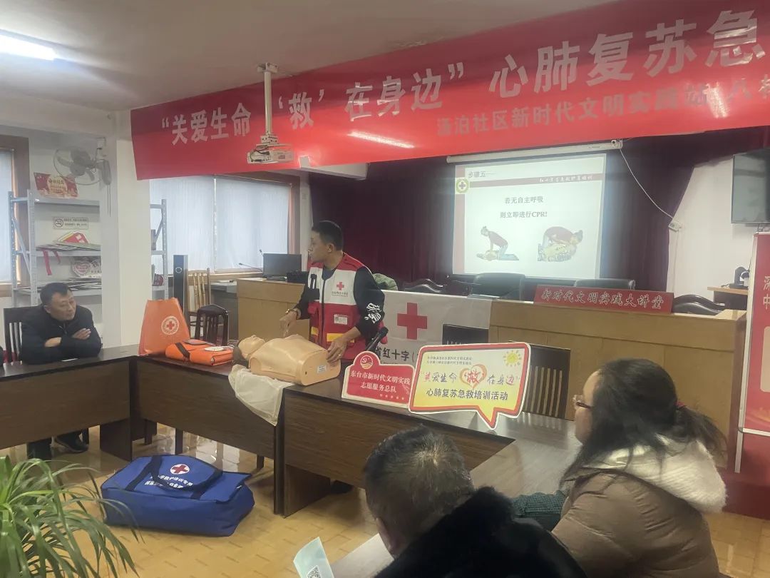 为进一步推动急救技能普及,强化辖区居民应急处置能力及自救互救意识,12月14日下午,市红十字会走进汤泊社区、八林社区新时代文明实践站,开展了“关爱生命,‘救’在身边”心肺复苏培训活动,旨在让大家从“想要救”,到“懂得救”、“愿意救”,学习急救技能,让猝不及防化为“防可胜防”。