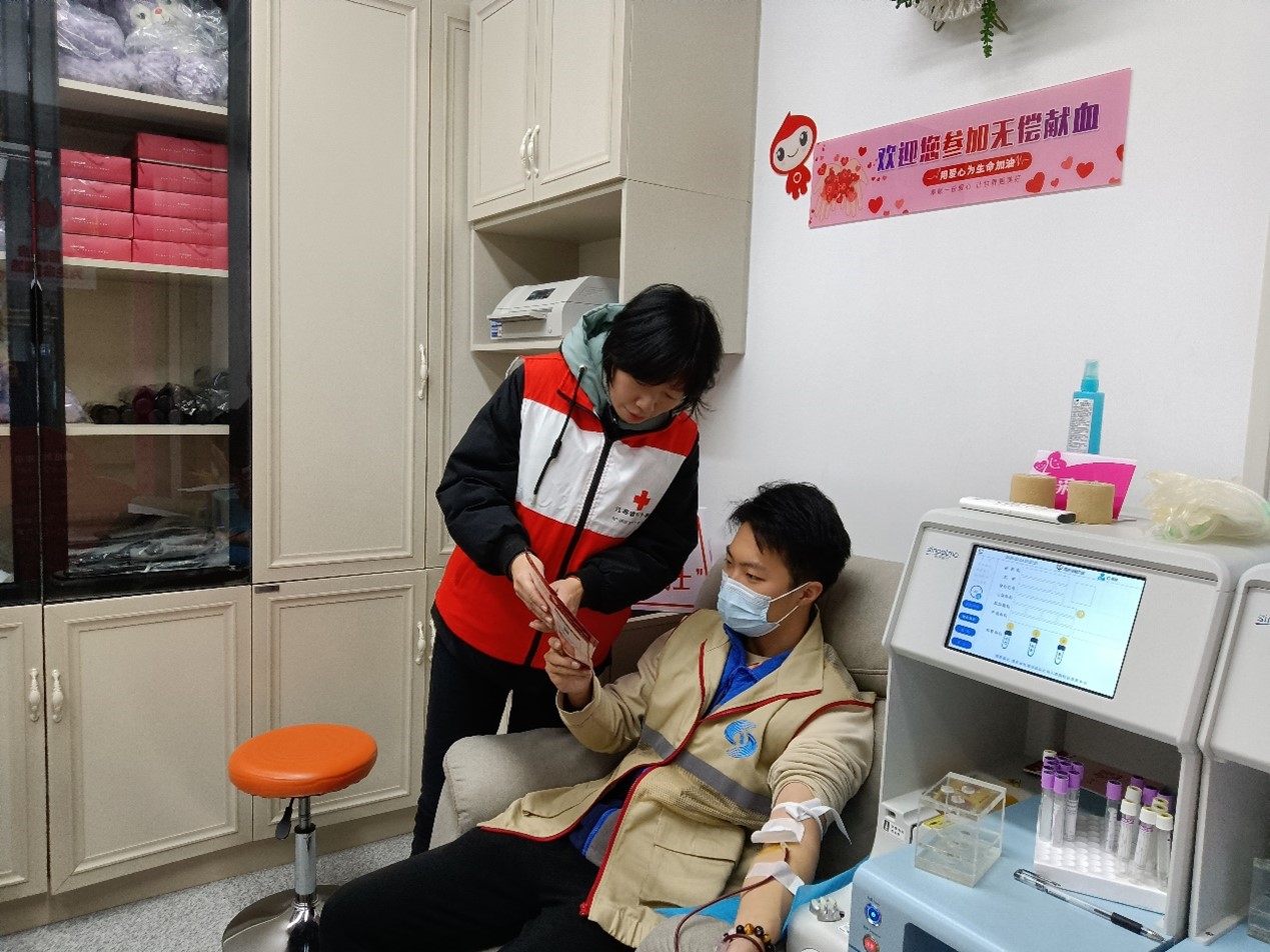 到达献血站,工作人员很热情的接待我们,详细询问了每个人的身体状况、献血经历,指导填写信息。化验验血合格后进入采血室。学田苑社区工作人员有的是献血“老面孔”,也有的是第一次来献血的“新力量”。大家纷纷撸起袖子,伸出胳膊,献出自己的青春热血。看着鲜红的热血流进血袋里。退伍军人小张表示,虽然我现在退伍了,在我心里我依然是一名战士。我特别自豪能参加到社区公益活动中,为南通献血事业贡献一份力量。新参加工作的网格员小孙说:学田苑社区是我参加工作的第一个单位,在这里我感受到家的温暖和社区工作者对公益事业的大爱情怀。我要每年都参加社区献血队伍。辖区退休人员朱阿姨说:今天很遗憾因检测结果没好献血。从现在开始我要加强锻炼,争取明年加入社区献血队伍,光荣成为一名献血志愿者。活动中,社区红十字志愿者在现场对初次献血者进行了心理疏导。