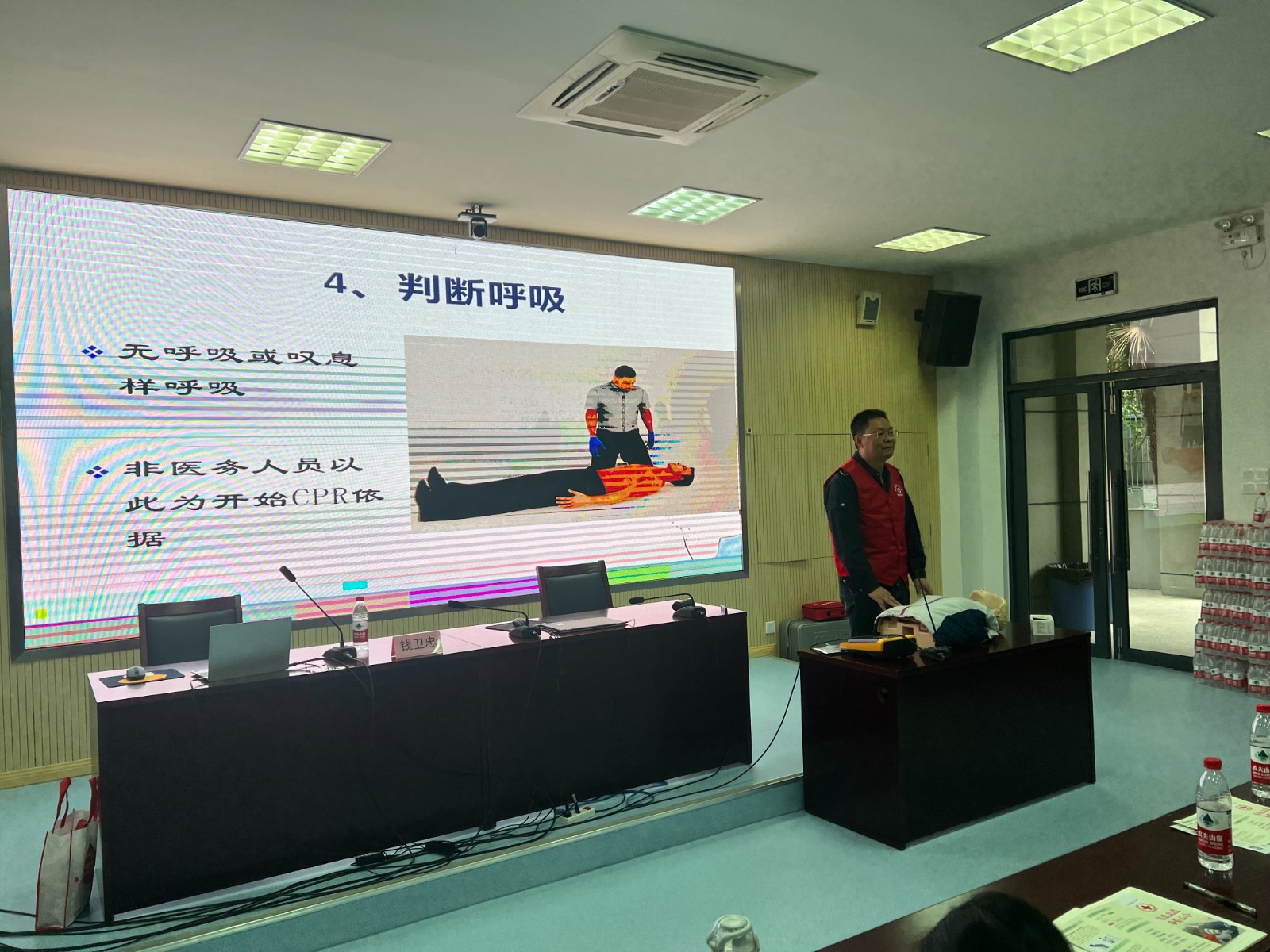 本次培训,由资深救护培训师,常熟市医疗急救中心副主任钱卫忠进行授课。钱卫忠用生动的语言,结合自己长期从事医疗急救工作积累的事例和经验,为学员们讲授了急救原则、心肺复苏术及海姆立克急救法等常用的应急救护技能。培训中,钱卫忠还邀请学员进行互动,参与操作,加深了学习印象。