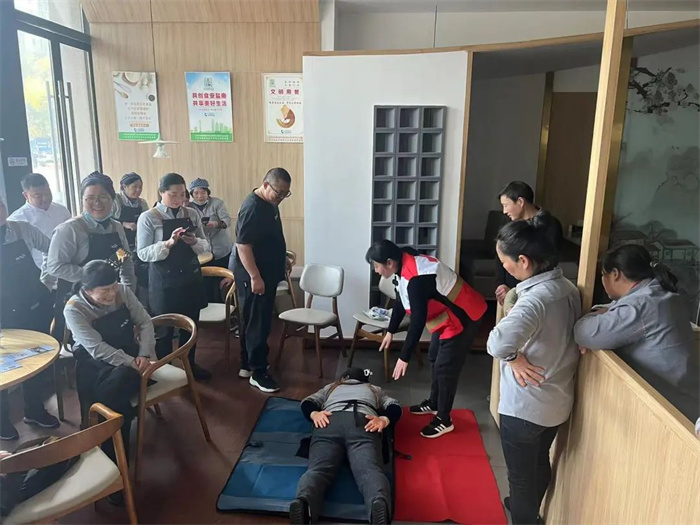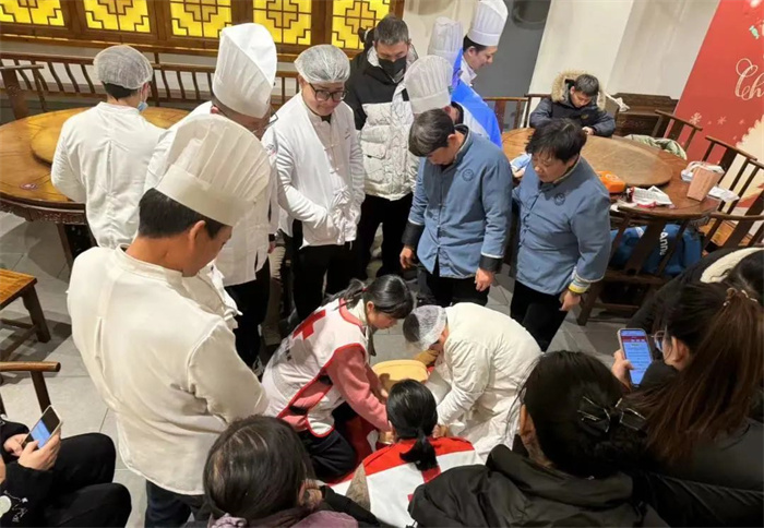 12月23日,市红十字应急救护师资队为八大碗餐饮管理有限公司水岸尚街店35名职工开展救护培训。