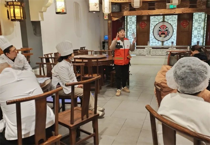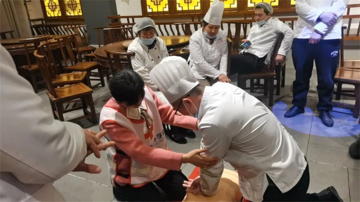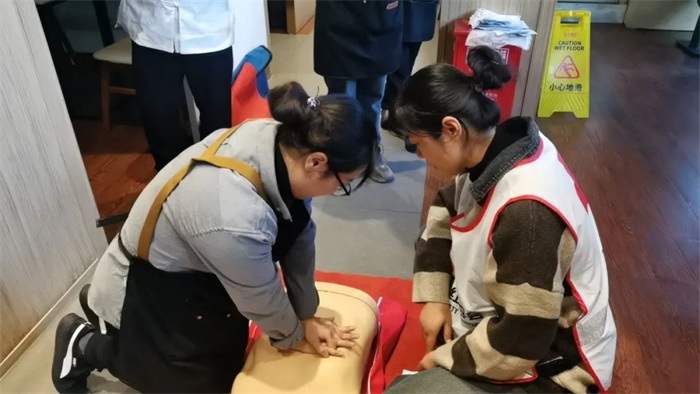 12月9日,市红十字应急救护师资队为八大碗餐饮管理有限公司金融城店30名职工开展救护培训。