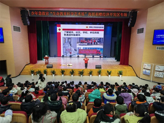 12月22日,市红十字应急救护师资队为北师大盐城附校小学部400名二年级学生开展应急救护培训。
