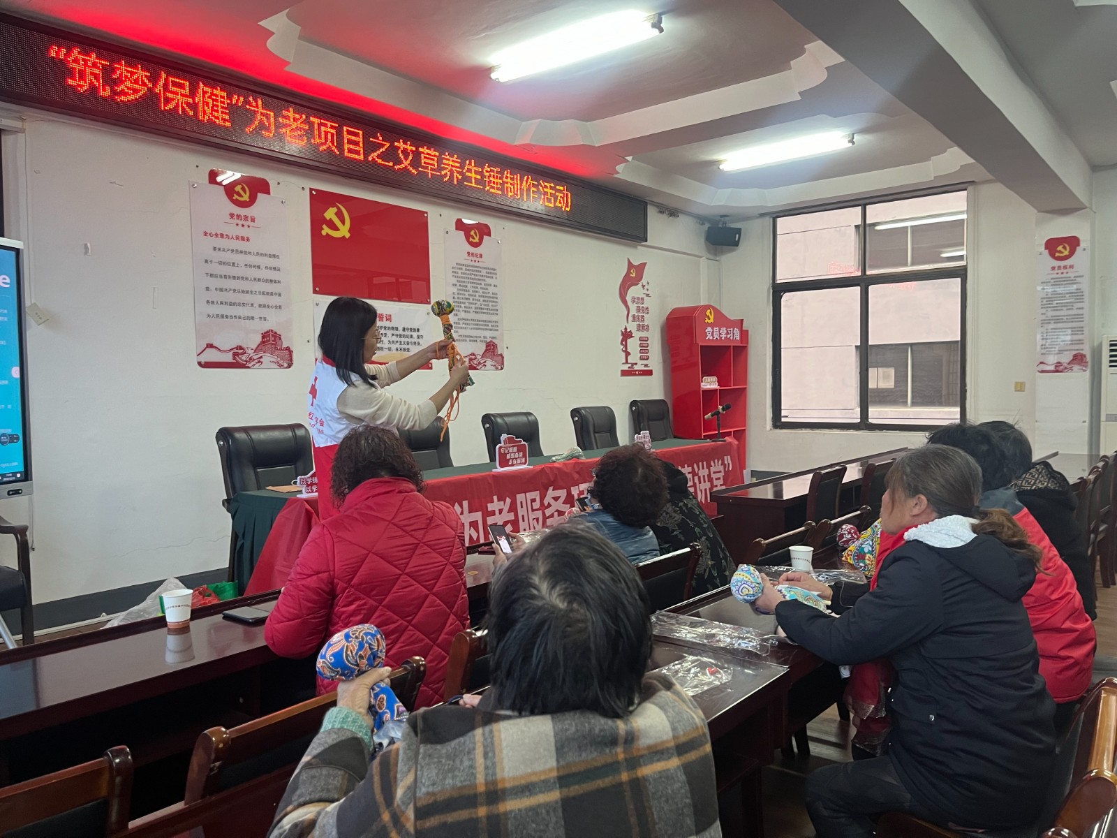 为提高辖区居民的健康意识,锻炼居民的动手能力,传递健康科学的生活理念,营造健康生活的社区氛围,12月18日,惠山区洛社镇保健村红十字会组织开展了艾草养生锤制作手工活动,用“艾”温暖居民的心。