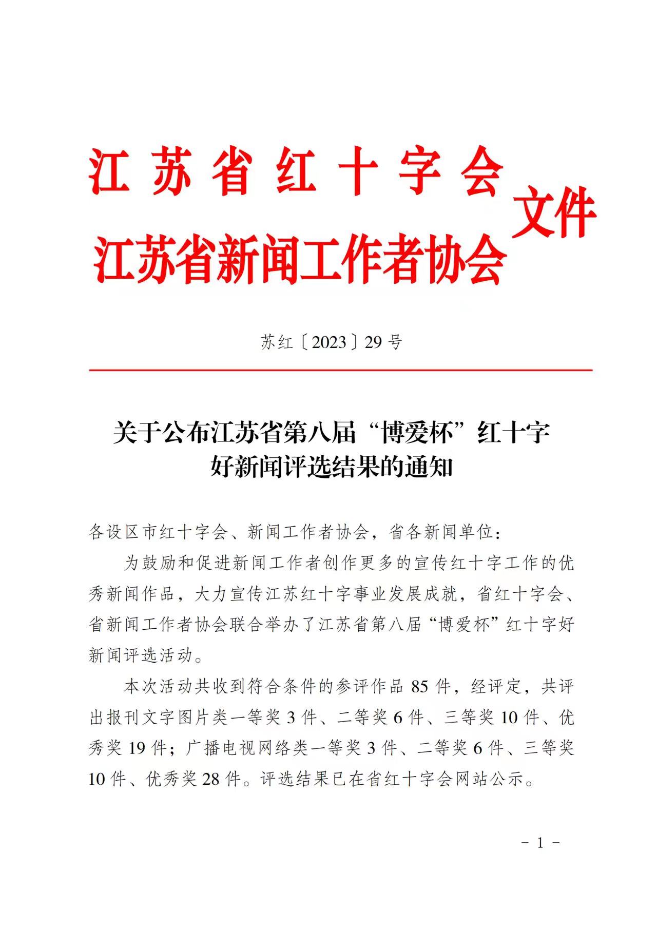 精心运维红十字文化宣传阵地,全年在中央和省、市级主要媒体刊发新闻报道99篇,市红十字会获总会报刊宣传先进集体特等奖和省红十字会“学用新思想‘苏’写新时代”主题宣传活动优秀组织奖。