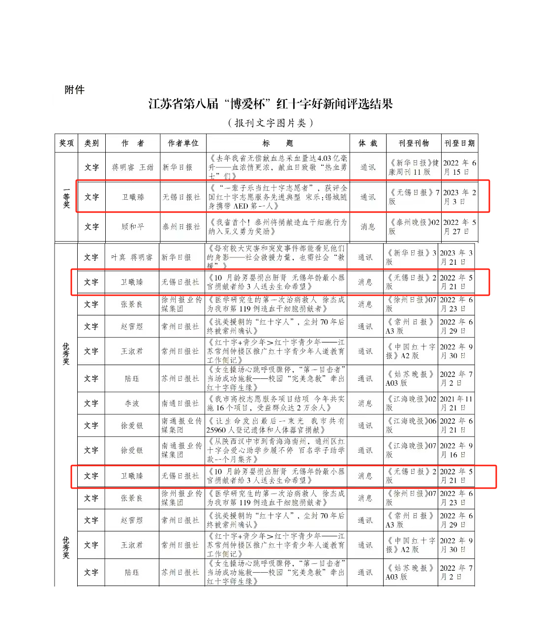 组织全系统参加省第八届“博爱杯红十字好新闻”评选,共有7件作品获得各类奖项。