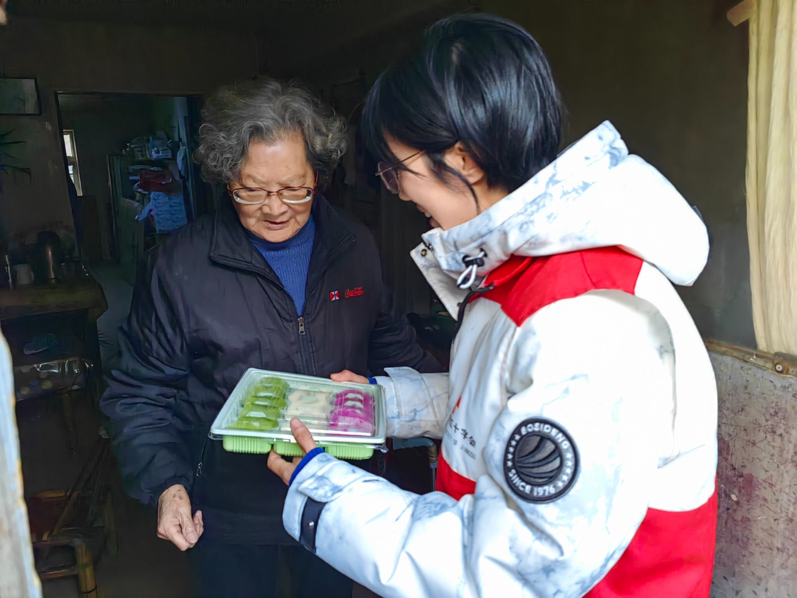 寒风凛冽,博爱情暖。独居老人张奶奶望着前来慰问的红十字志愿者们感动地说道:“天气这么冷,你们还给我送来了饺子,而且每到节日都会来看我,孩子们,真是太谢谢你们了。”同时,红十字志愿者还叮嘱老人们寒潮天气注意身体,提醒雨雪冷冻路面比较湿滑,尽量少出门,有困难随时联系社区博爱家园。天寒地冻中,一股股暖流温暖着独居老人的心房。