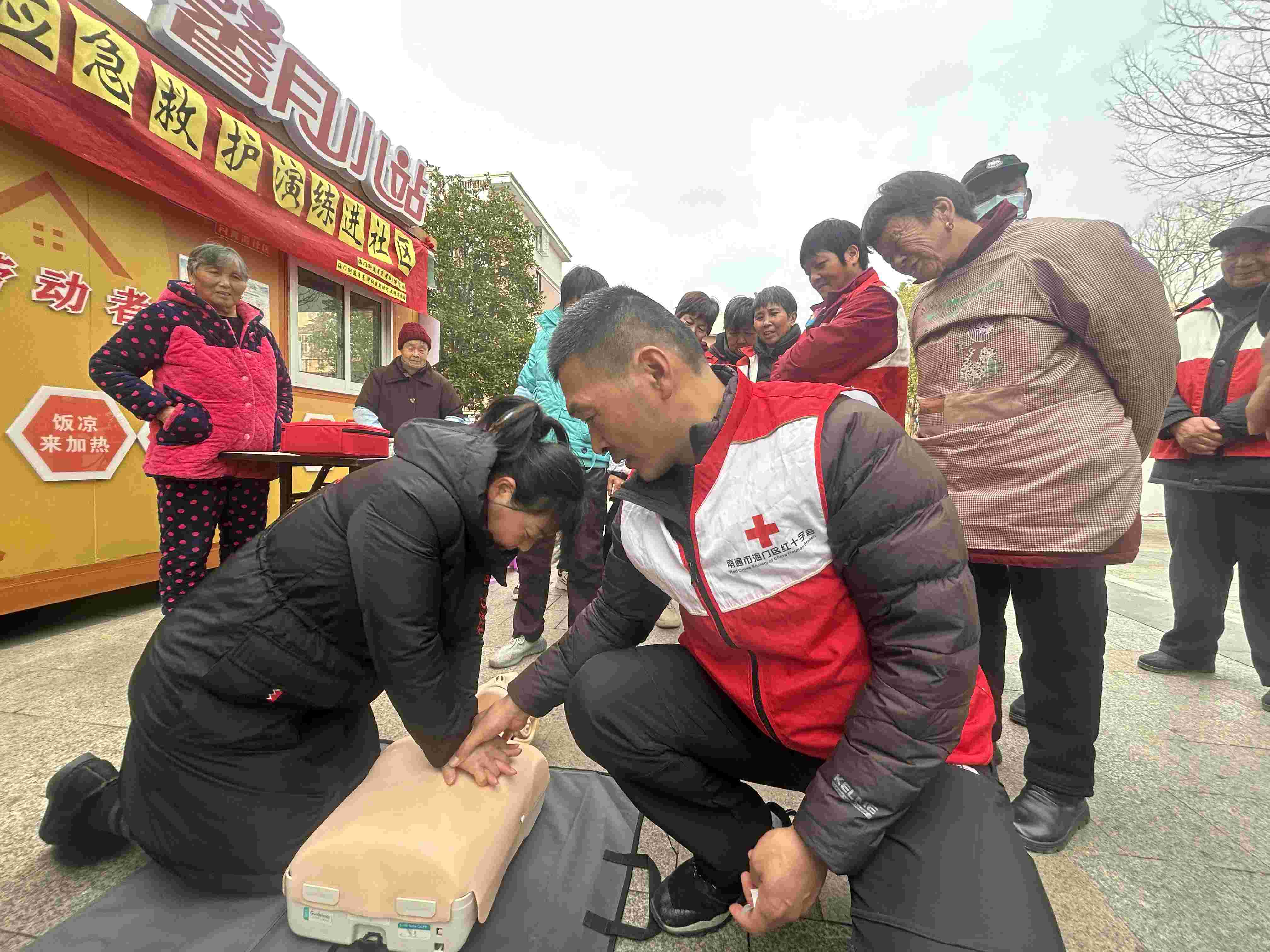 为提高辖区居民群众应对突发事件自救互救能力,12月27日下午,月亮湾社区博爱家园在“馨月小站”开展“应急救护演练进社区”活动,红十字会培训讲师姜雄彪现场进行心肺复苏、气道异物梗阻等应急救护知识以及防震减灾知识普及。