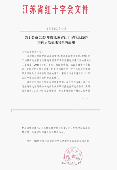 日前,江苏省红十字会发布《关于公布 2023 年江苏省红十字应急救护培训示范基地名单的通知》,泗洪县红十字会应急救护培训基地被江苏省红十字会授予“江苏省红十字应急救护培训示范基地”。
