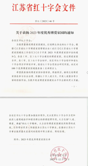 为高质量推进博爱家园建设,打造群众身边的红十字会,根据《江苏省红十字博爱家园管理办法(试行)》《江苏省红十字博爱家园建设工作指引》《关于开展2023年博爱家园评估的通知》,泗洪县大楼街道北新集社区博爱家园、朱湖镇新行社区博爱家园被评为优秀博爱家园。