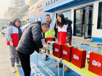一份福袋赠关怀。志愿者们为新业态新就业群体集中发放暖“新”福袋,福袋中包含暖冬饮品、暖宝宝、护手霜等慰问品,用小小福袋在寒冷的冬日里为其送上浓浓关怀。