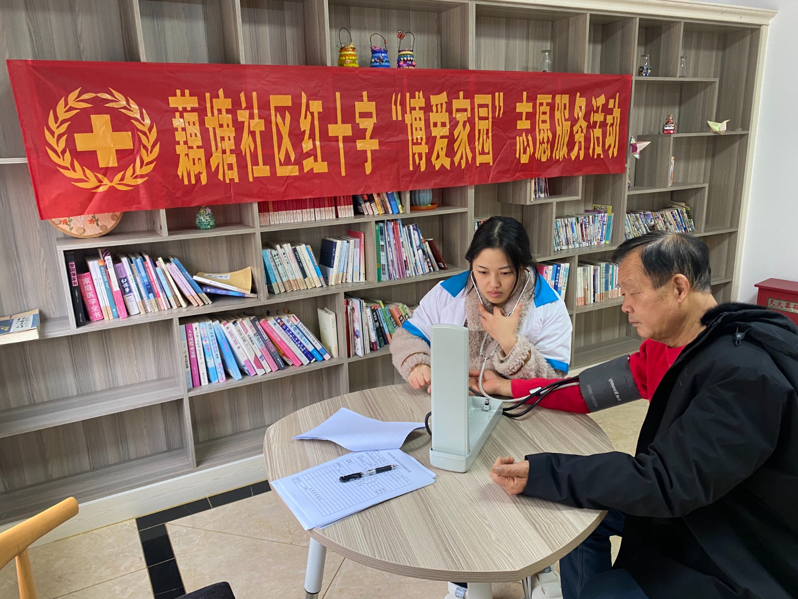 为了给社区老年人营造一个健康快乐的晚年,提高社区居民的健康水平,更好地服务于居民,12月27日上午,惠山区钱桥街道藕塘社区博爱家园邀请藕塘医院医务人员免费给辖区60周岁以上的居民、慢性疾病对象提供了量血压、测血糖活动。
