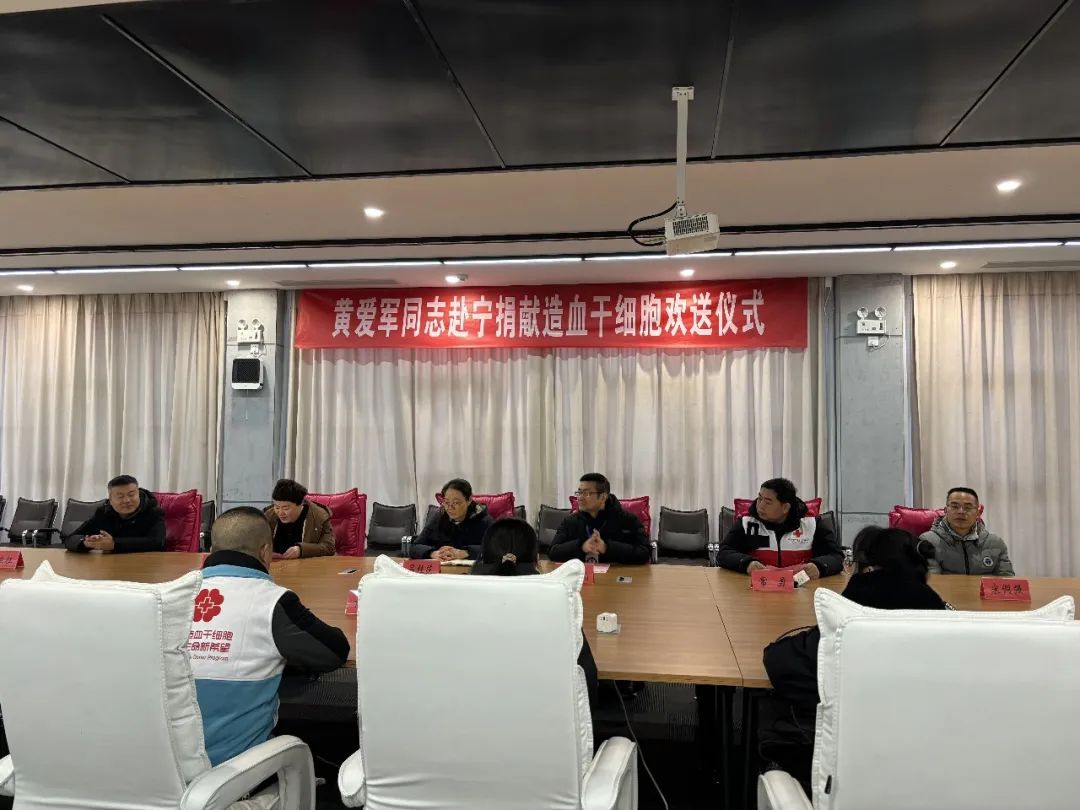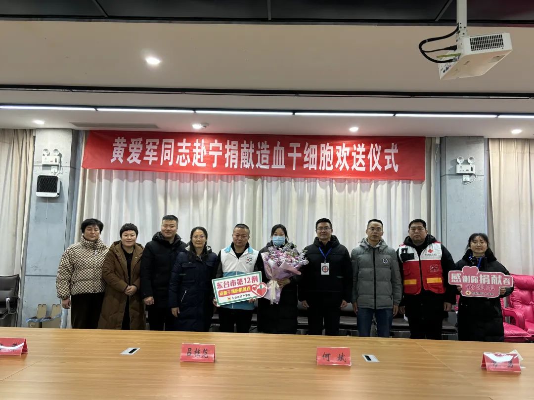 12月22日上午,市红十字会、经济开发区联合在东台领胜集团为黄爱军同志举行赴宁捐献造血干细胞欢送仪式。欢送仪式上,市红十字会、经济开发区、领胜集团相关负责人对黄爱军的大爱善举给予支持鼓励,勉励大家积极加入中华骨髓库,为更多患者点燃生的希望。仪式结束后,黄爱军在市红十字会工作人员的陪同下前往南京明基医院,将于12月27日进行造血干细胞采集。