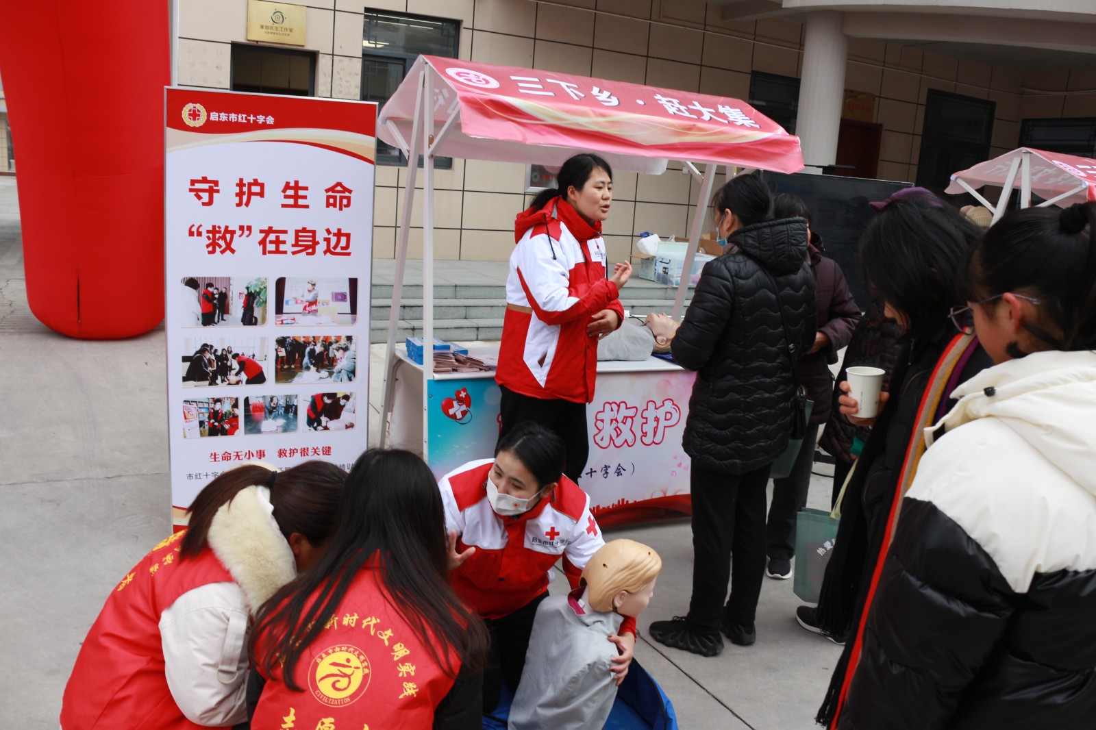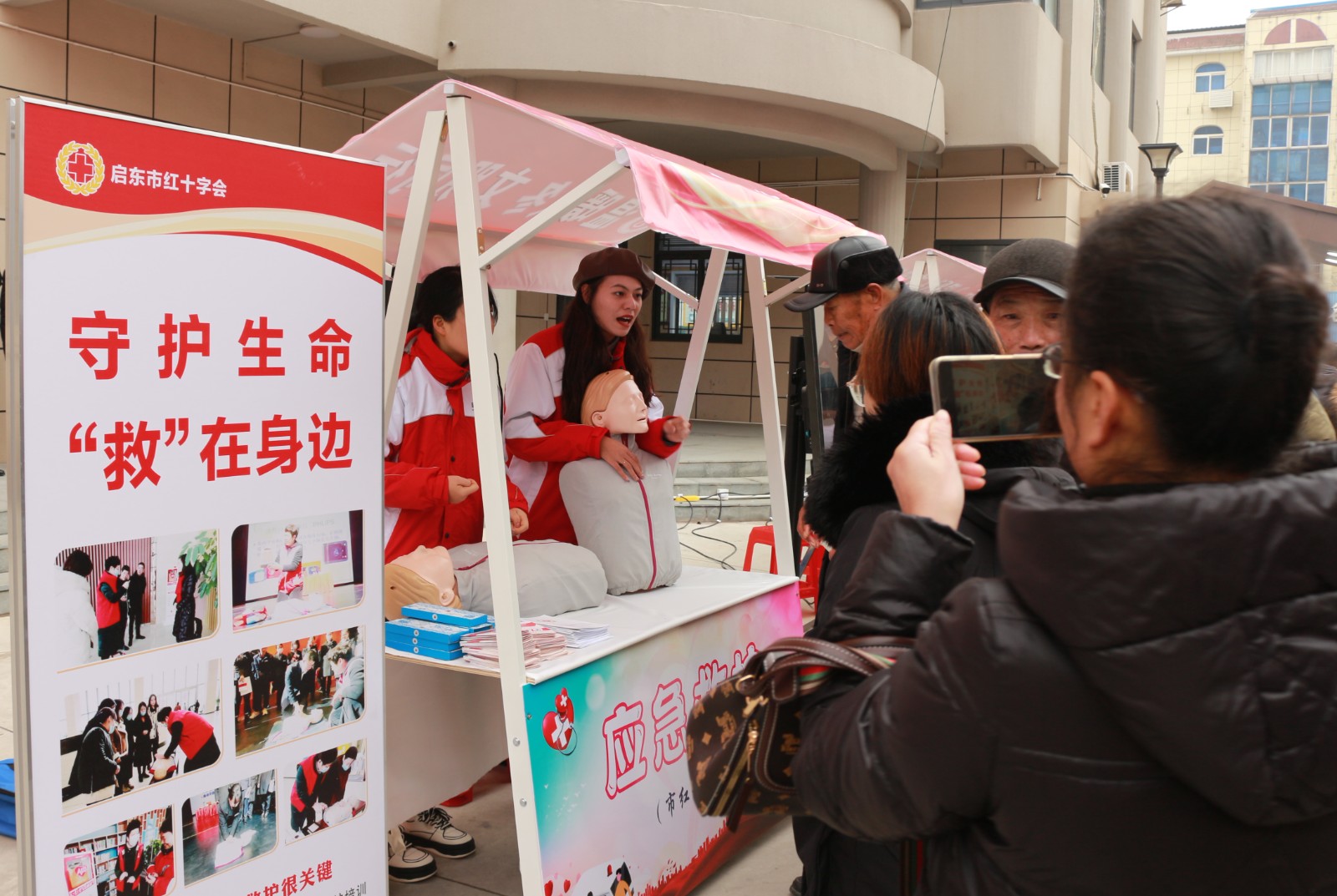 2023年1月1日上午,吕四港镇新时代文明实践所广场上锣鼓喧天、载歌载舞,涌动的人潮沉浸在喜庆祥和的气氛里。由市委宣传部、市文明办、市委网信办、市文广和旅游局、市卫健委、市科技局、市科协主办的“三下乡”“赶大集”活动拉开帷幕。围绕“温暖秋冬 暖心惠民”主题,共有27个志愿服务分队开展志愿服务活动,吸引了许多市民现场“赶集”。启东市红十字会工作人员和启东市红十字会赈济救援队队员参加了活动。