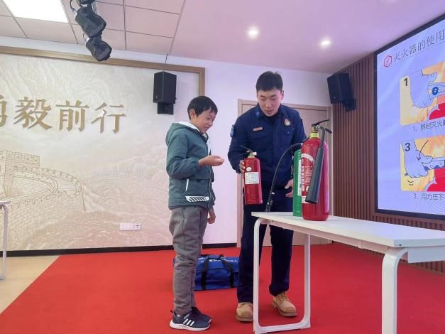 活动特邀南京中华中专专业学校消防安全学院教官陈昌文陈教官为辖区内亲子家庭开展安全知识宣讲,活动一开始,陈教官给大家欣赏了消防安全教育视频,并请现场的青少年进行了消防安全知识问答,大家踊跃发言,在问答过程中,青少年们知道了在火灾中如何逃生和如何自救,比如:当身上的衣服着火了,应立即在地上打滚将火扑灭;遇到火灾应匍匐前进,用水打湿毛衣或衣物捂住口鼻;拨打消防电话应说清着火点、着火原因等。陈教官还结合火灾案例,用生动的语言,向大家介绍了家庭防火的注意事项,火灾现场的自救和逃生要诀、灭火器的种类和使用方法等消防常识,并现场向大家演示了灭火器的使用。而后陈教官还现场给大家演示了海姆立克急救法、以及溺水后救助的正确操作方法,并邀请家长及小朋友们到台上进行了现场演示,让青少年家庭了解了在遇到异物阻塞喉管、溺水等危险后,应如何进行急救,进一步加强了青少年家庭对于安全防护的认知。