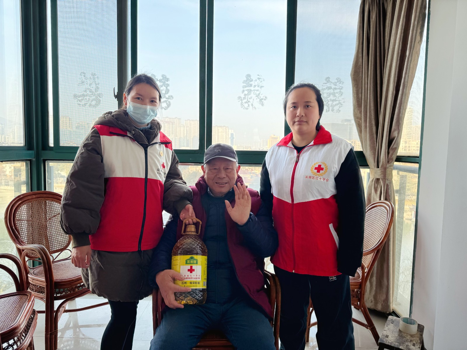 慰问中,溪南社区红十字会工作人员及志愿者来到几位独居老人家中,与老人们亲切交谈,关心询问老人们的身体和生活情况,并为老人们送上新春的祝福及米、油等生活用品。“谢谢你们,有你们经常来陪我说说话,惦记着我,我感到十分感动!”家住月溪苑的张老伯说道。