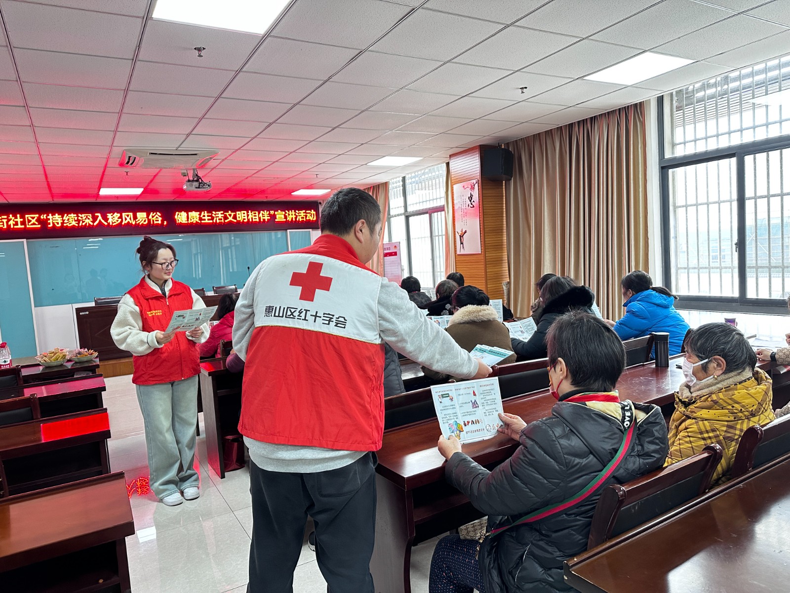 1月9日上午,惠山区堰桥街道新街社区红十字会发起了一场主题为“移风易俗,文明祭祀”的倡议活动,旨在倡导社区居民采用文明、环保的方式进行祭祀,树立文明祭祀新风尚,引导社区居民践行文明、绿色的祭祀方式,共同维护社区环境的整洁与美丽。