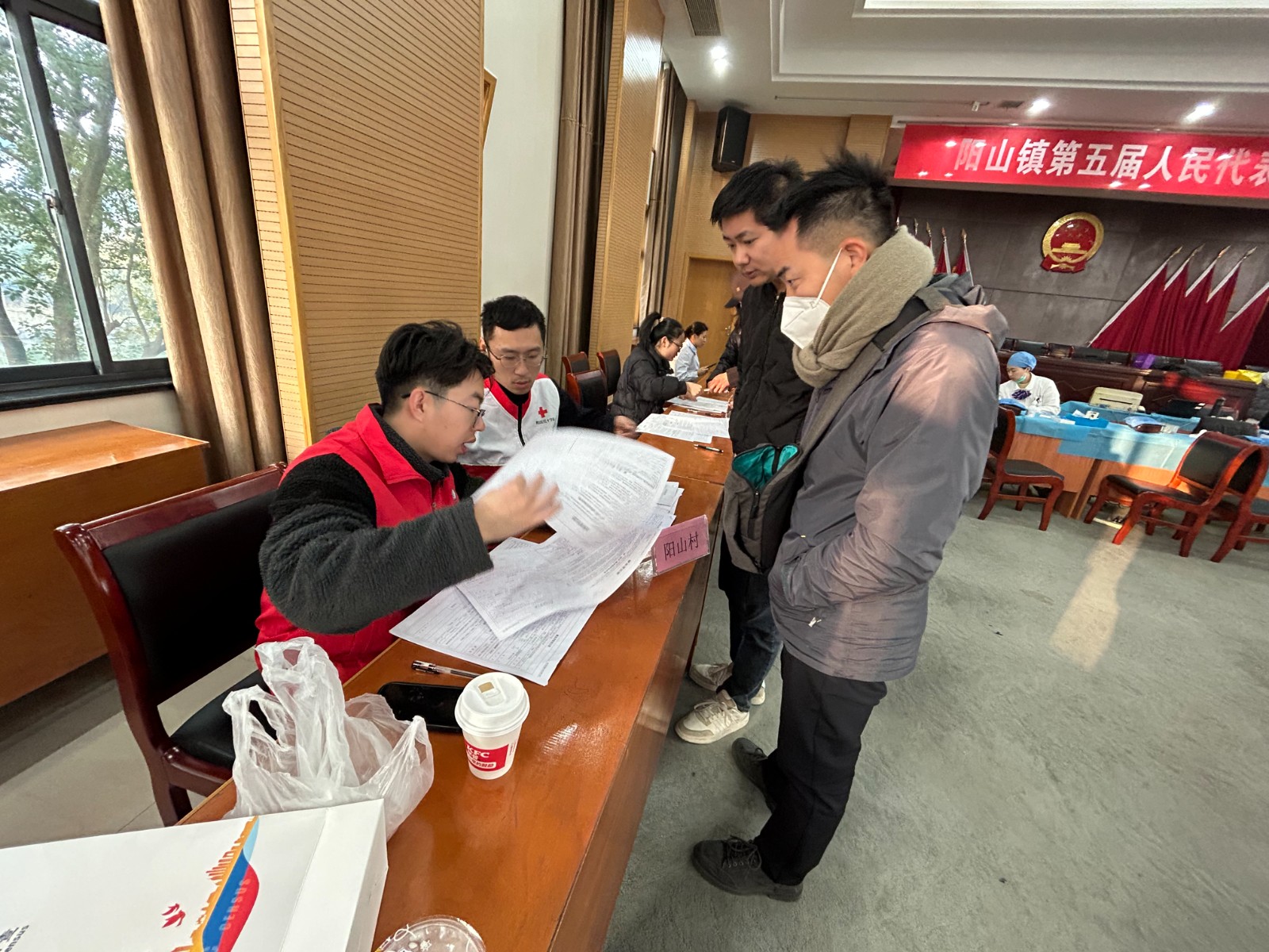 1月11日上午7点30分,惠山区阳山镇阳山村组织志愿者们来到阳山镇人民镇政府3号楼二楼献血点参加无偿献血、造血干细胞入库活动。