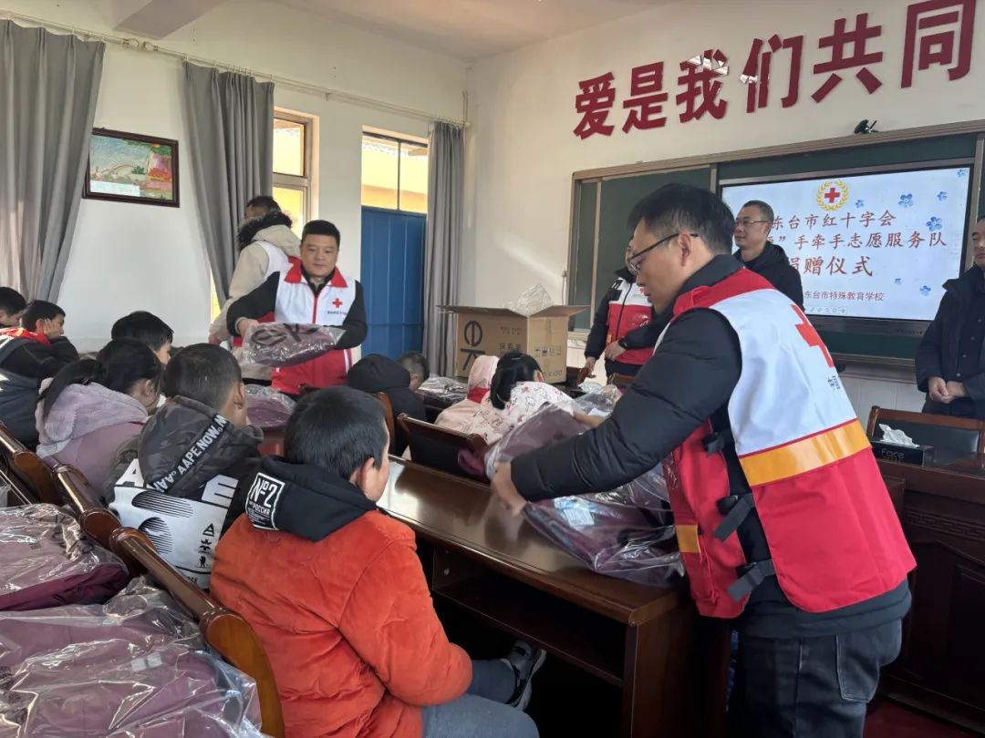 爱心点燃希望,真情传递温暖。1月5日,市红十字会“头雁”手牵手志愿服务队的志愿者们冒着严寒,来到市特殊教育学校,为孩子们捐赠了价值4000余元的定制棉衣,确保在寒冷的冬天每一位学生都能穿上新棉衣。捐赠仪式上,志愿者们分工协作,将一件件崭新的棉衣发放到每位学生手中,现场洋溢着欢乐的笑声。受助学生纷纷表示,将刻苦学习,增强技能,用实际行动去回馈社会对他们的爱与关怀。