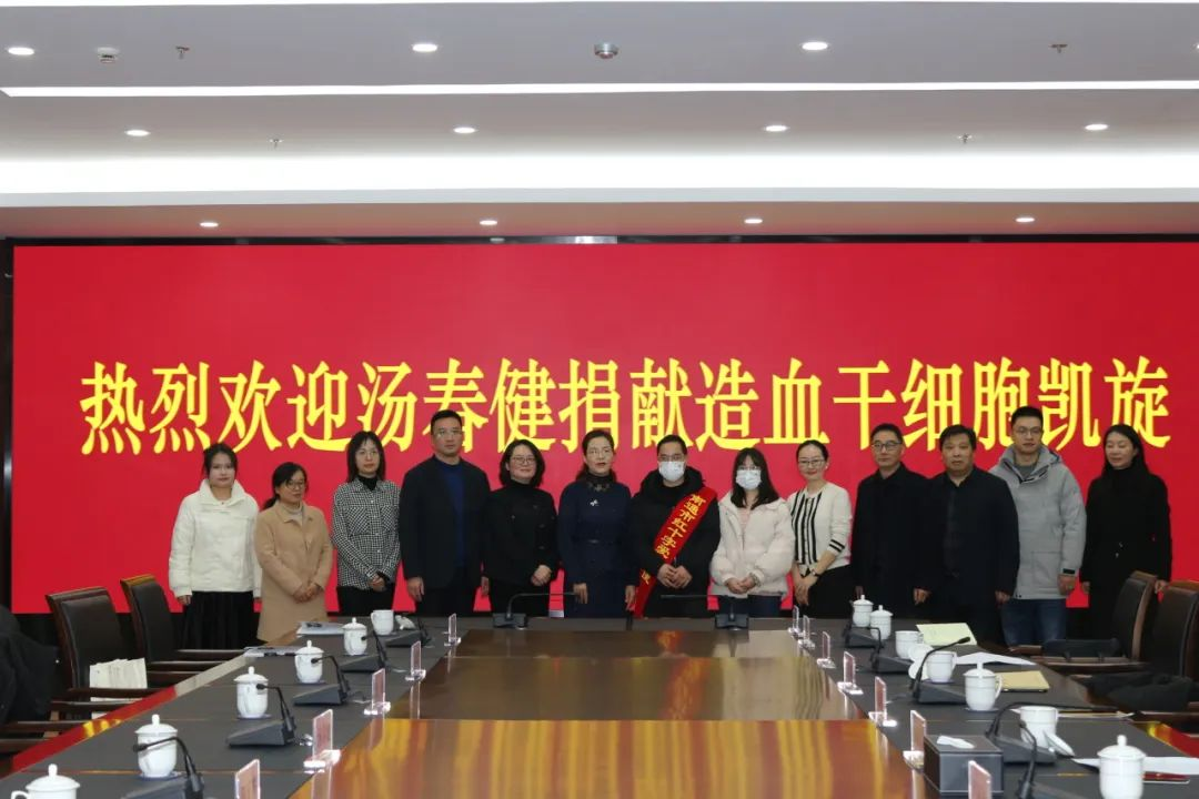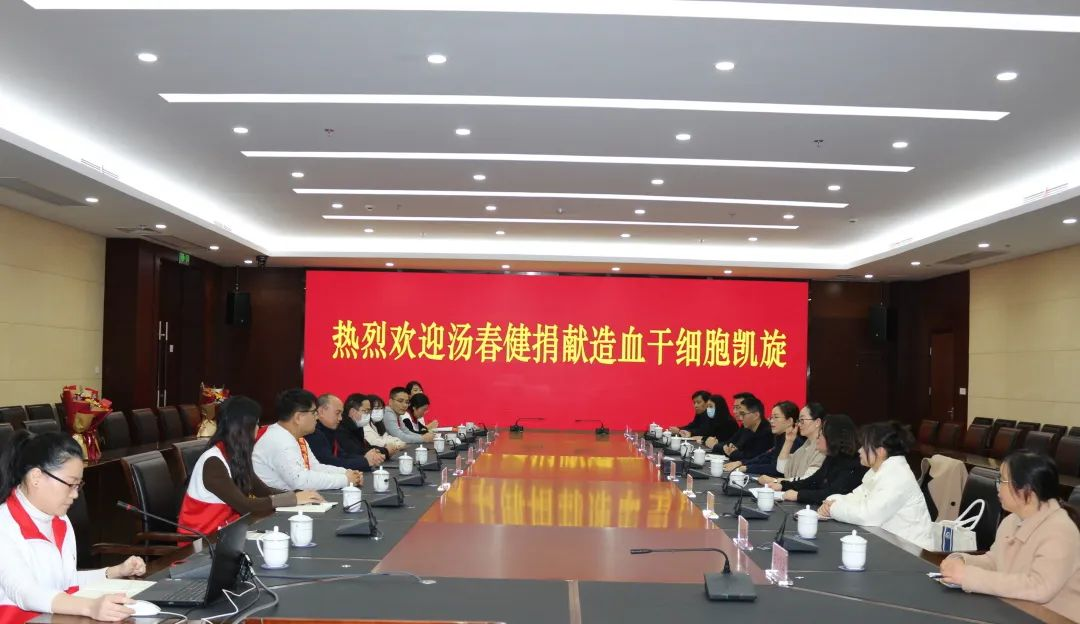 1月16日下午,冬日暖阳甚是喜人,市行政中心科技楼407会议室内更是鲜花芬芳,洋溢着热烈而喜庆的气氛,汤春健成功捐献造血干细胞凯旋欢迎会在此举行。市政府副市长郁丽春出席会议,市红十字会常务副会长、党组书记陆婧婧主持会议。