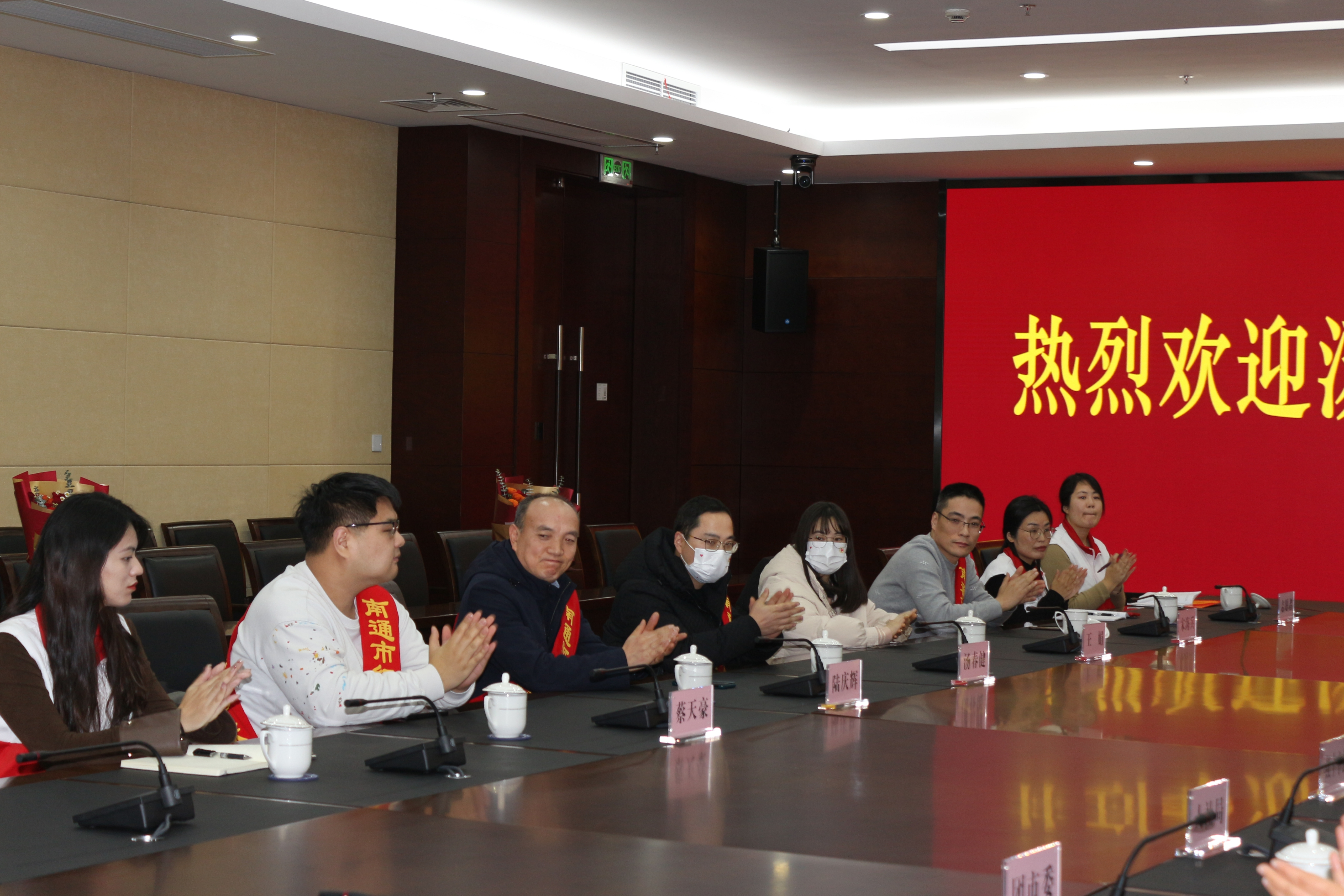 政府办、市委宣传部(文明办)、市卫健委、市人社局、市总工会、团市委、市妇联相关负责人、东海镇卫生院领导、红十字志愿者代表等参加欢迎会。