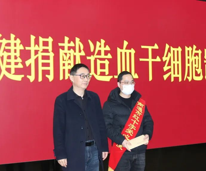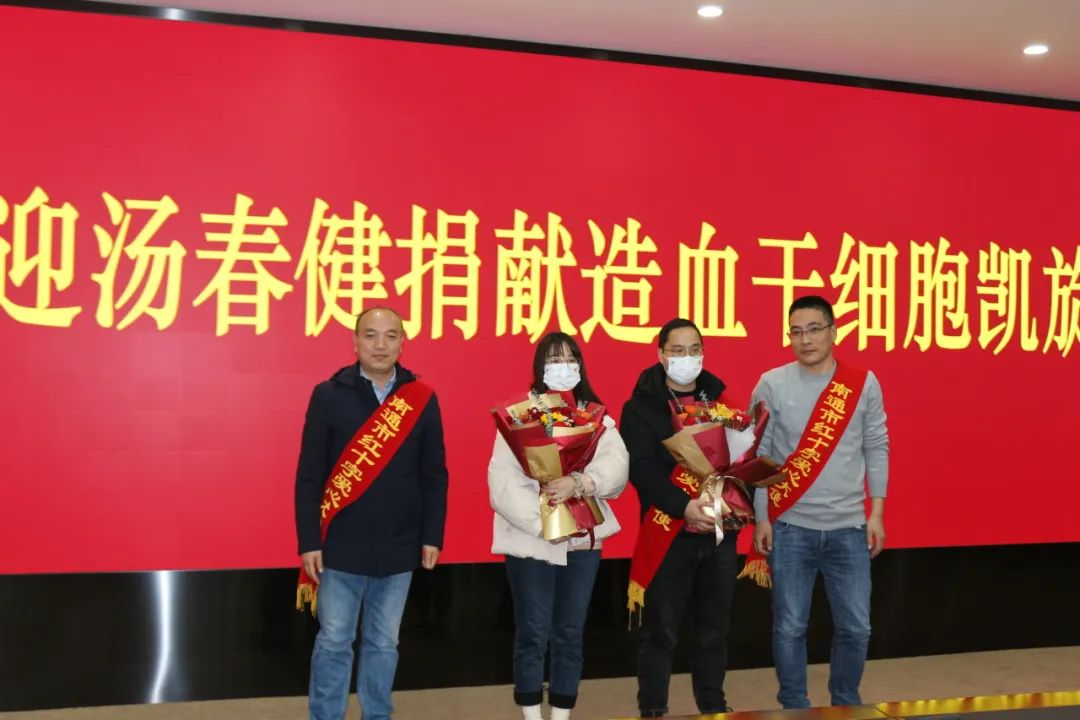 欢迎会上,红会工作人员详细介绍了汤春健的整个捐献过程,让与会人员深切感受到他勇敢无私、大爱奉献的可贵品质。历年成功捐献者代表向汤春健同志及其家人献花,表达深深的敬意。
