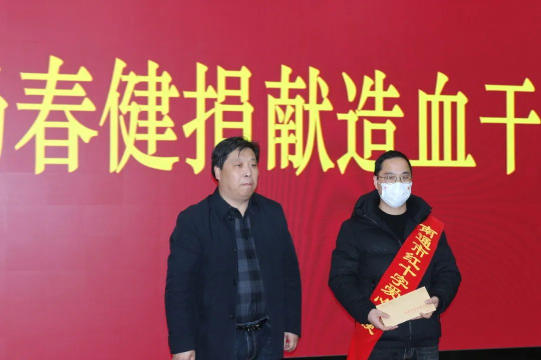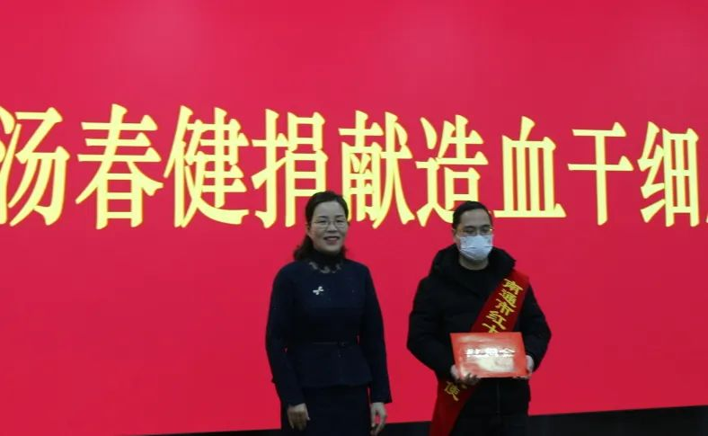汤春健同志是卫健系统造血干细胞成功捐献第4人。市卫健委主任、党组书记苏高飞为汤春健颁发慰问金,并赞扬了汤春健奉献青春热血,用爱心重燃患者生命之光的大爱精神。东海镇卫生院也为汤春健发放了慰问金。