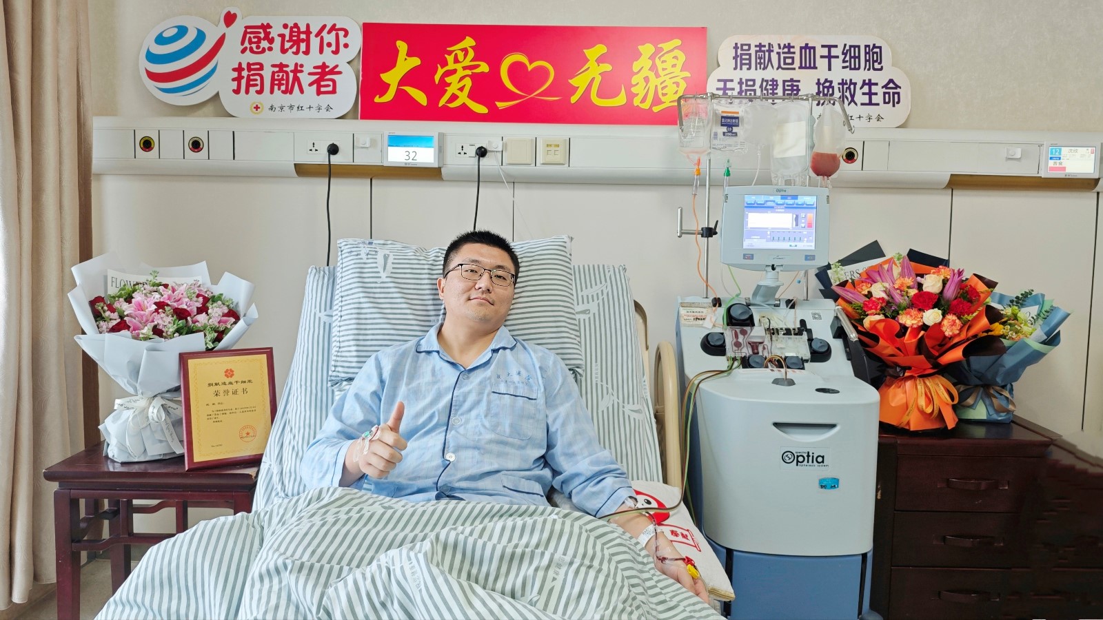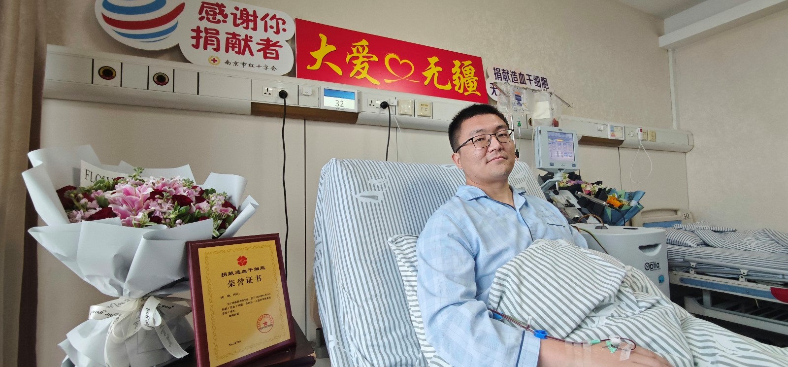 2023年12月26日,2024年1月16日,因移植受者病情多次反复,采集造血干细胞的计划不得不多次更改。然而为患者无偿提供造血干细胞的捐献者-南京市雨花台区文旅局的沈欣却毫无怨言,救人的决心从未改变。终于,在1月18日中国传统节日腊八节当天实现了捐献造血干细胞的愿望。他为一位血液病患者送去了生命的希望,也成为江苏省第1308位、南京市第179位、雨花台区第14位造血干细胞捐献者。