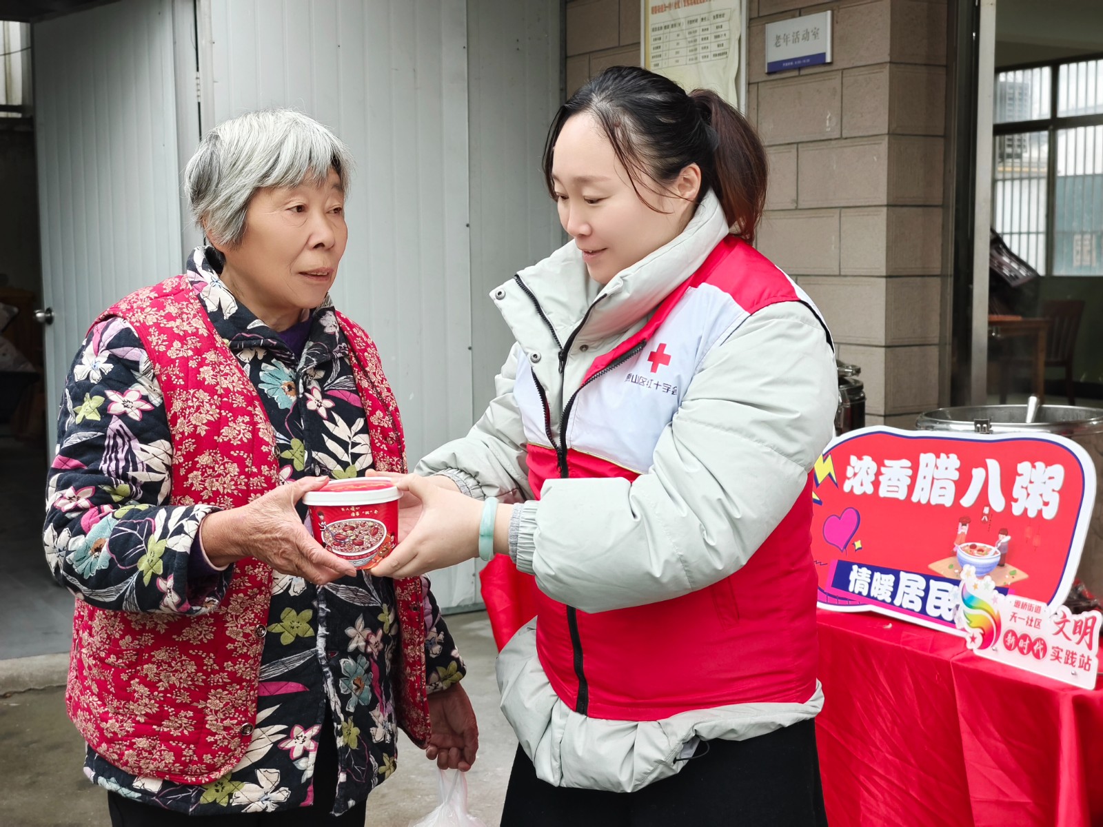 1月17日,惠山区堰桥街道尤旺社区红十字会组织开展了“惠民同乐贺新岁 腊八粥香暖意生”活动。为了让寒冷的冬日变得更加温暖,在活动现场设立了多个便民服务摊位,还有准备了文艺表演。另外,志愿者们还为社区居民精心准备了寓意吉祥的腊八粥。腊八粥香暖意生,不仅代表着节日的喜庆,更寓意着家庭团圆、社会和谐。在腊八粥的发放过程中,社区居民们相互传递着温暖,欢声笑语不断,节日的氛围愈发浓厚。