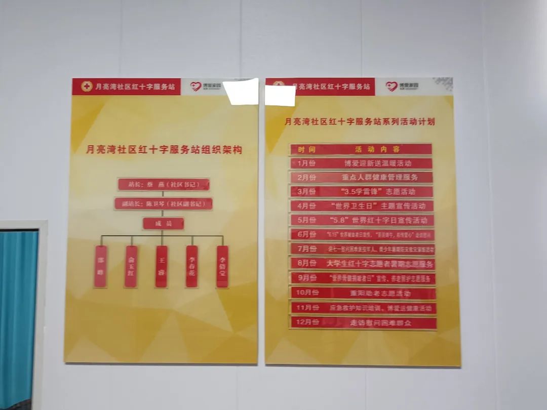 月亮湾社区博爱家园以社区党组织为领导核心、社区红十字服务站为工作纽带,创新打造以“党建红”为核心的“红网格”,组建了一支由社区工作人员、退休党员、退役军人、热心居民构成的213人的红十字志愿者服务队,真正做到有队伍、有人员、有场地、有窗口,为常态化开展红十字服务打下坚实基础。
