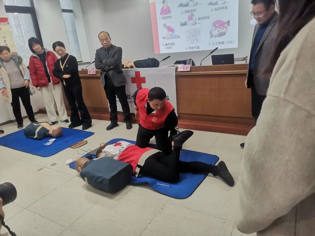 本次培训内容包括红十字运动基本知识、心肺复苏及AED使用、海姆立克急救法等常见急症的救护知识、操作技巧和注意事项进行了详细讲解,在实操环节,学员反复练习心肺复苏术和针对气道异物梗阻的海姆立 克急救法的规范动作。他们表示,这种培训实用性强,不仅传播了“人人学急救,急救为人人”的“人道”急救理念,还提高了参训者的自救互救能力和应急救护技能。