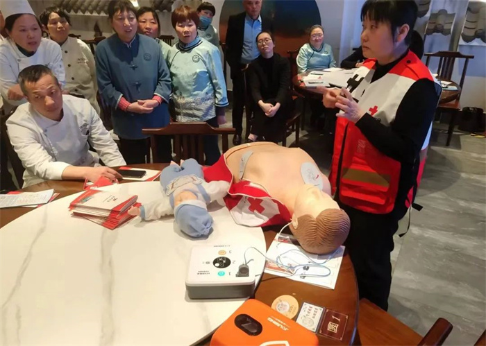 近期,市红十字应急救护师资队为八大碗餐饮管理有限公司盐城建军路店31名职工开展救护培训。