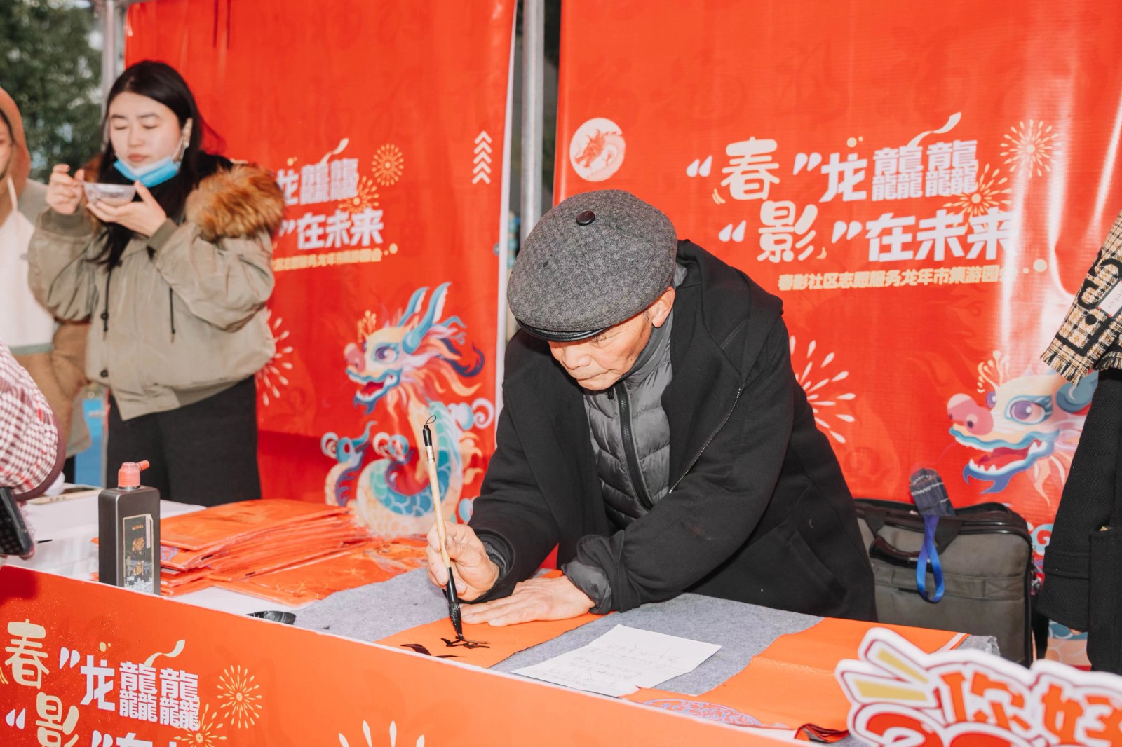 写春联、贴福字、剪窗花是我们传统的新春习俗,书法爱好者们挥毫泼墨,笔走龙蛇,用一幅幅寓意吉祥的春联、一张张喜气洋洋的“福”字,让现场充满浓浓的年味。