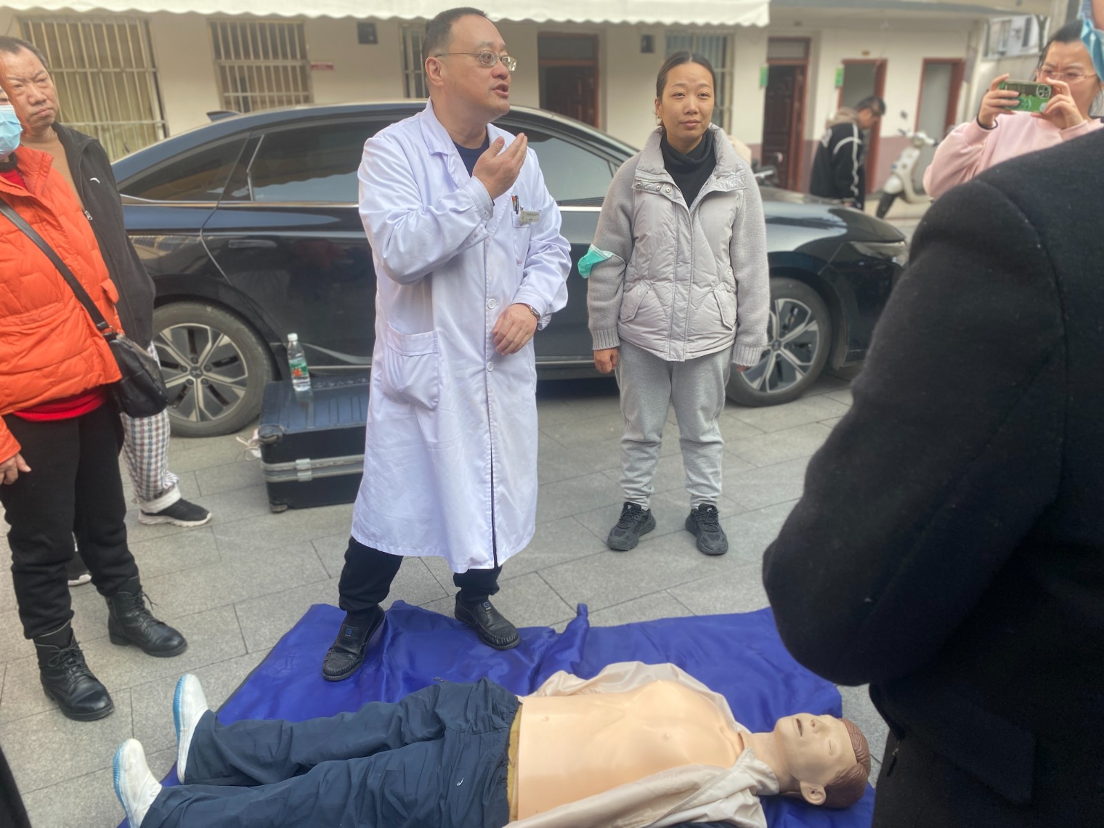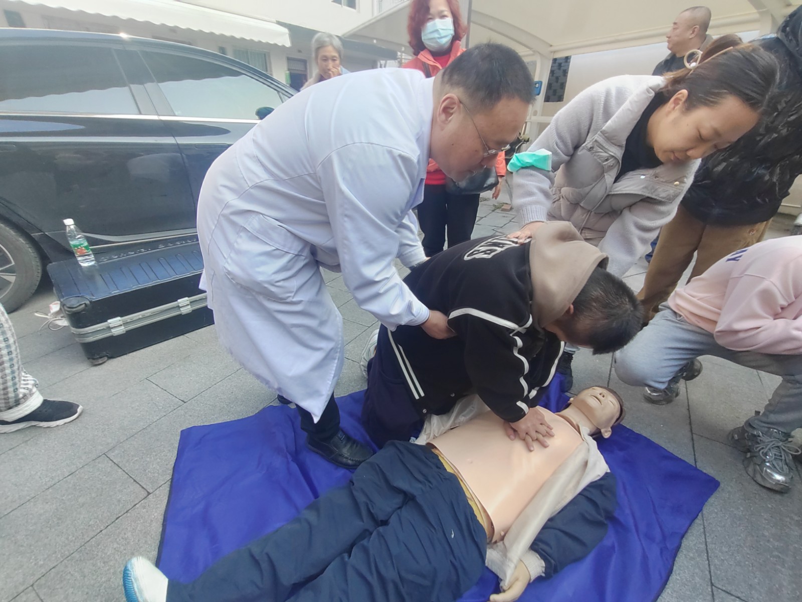 活动伊始,居民们早早的来到了会议室,来自心血管内科的赵湘雄和徐亚运两位专家采用理论结合实际的方式,介绍了心肺复苏的操作技巧。居民们通过理论知识—观看影片—提出问题—思考讨论的步骤,对“黄金4分钟”、心肺复苏术、海姆立克急救法等有了初步的了解。