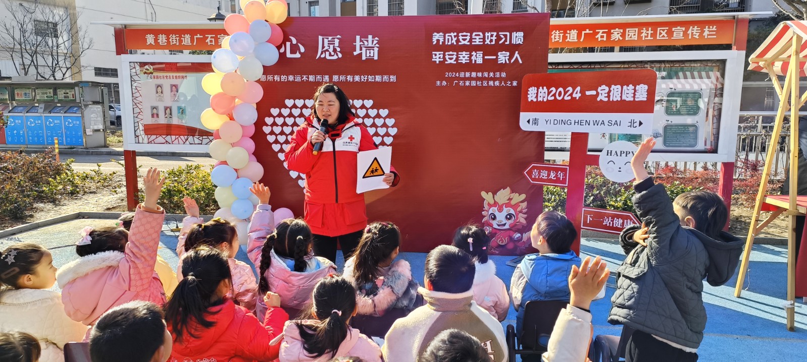 为提升居民幸福指数,增强幼儿的自我保护和安全防范意识,梁溪区黄巷街道广石家园社区红十字会组织开展“养成好习惯 幸福一家人”——家庭安全知识竞答趣味闯关迎新活动,邀请辖区居民和辖区幼儿园的小朋友参加了本次活动。