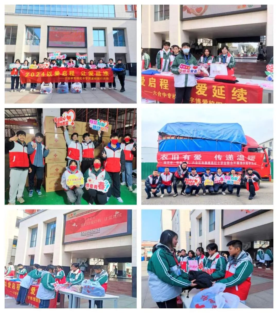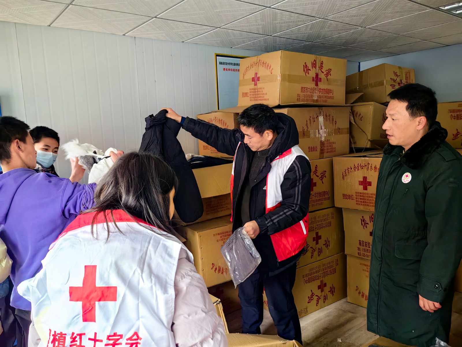 2024年1月22日、23日,南京市红十字会的物资车到达湖南省张家界市桑植县,将一车车的温暖送给了桑植县贺龙中学、桑植县第四中学的同学们。此次捐衣助学活动得到了六合区红十字会、南京市科华中学棠城分校、南京六合中等专业学校及爱心企业的大力支持,共筹集过冬棉服4055件,价值186570元。
