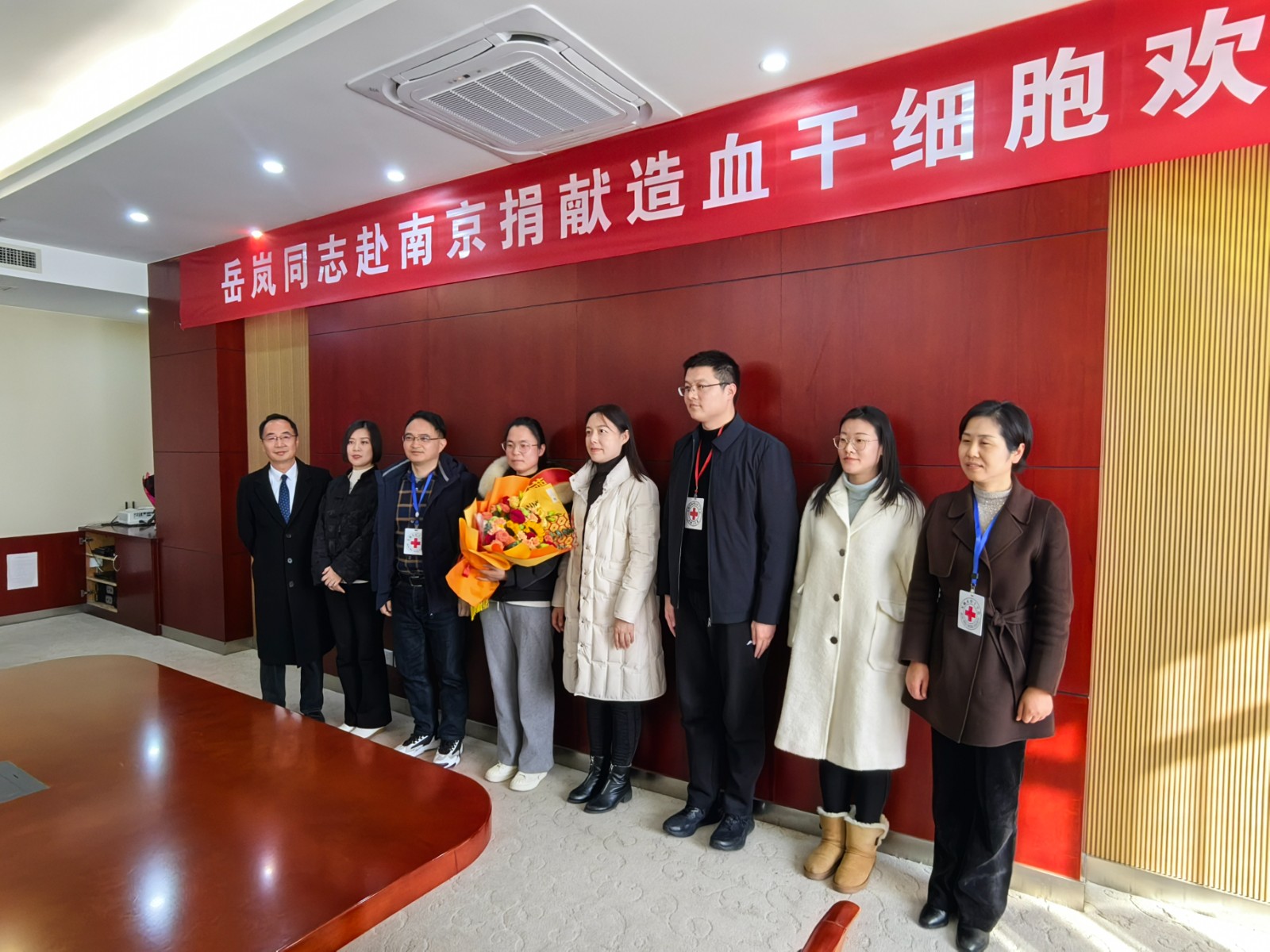 以挽袖之爱点亮生命之光!1月25日下午,无锡市红十字会、滨湖区红十字会、蠡湖街道红十字会共同为即将成为无锡市第102例、滨湖区第13例的造血干细胞捐献者岳岚赴南京捐献造血干细胞举行欢送会。无锡市红十字会党组成员、副会长周彬,区政府副区长、红十字会会长徐新宇区文明办、区红十字会、蠡湖街道分管领导及相关部门负责人,志愿者代表、捐献者岳阳及其单位领导同事参加会议,会议由区红十字会党组书记、常务副会长武乔木主持。