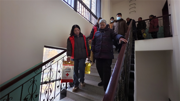 1月26日下午,市红十字会党组书记、常务副会长胥晨霞一行分别前往亭湖区的5个“博爱家园”和盐都区的2个“博爱家园”,走访慰问40户困难群众,发放慰问金和大米、食用油等慰问品。