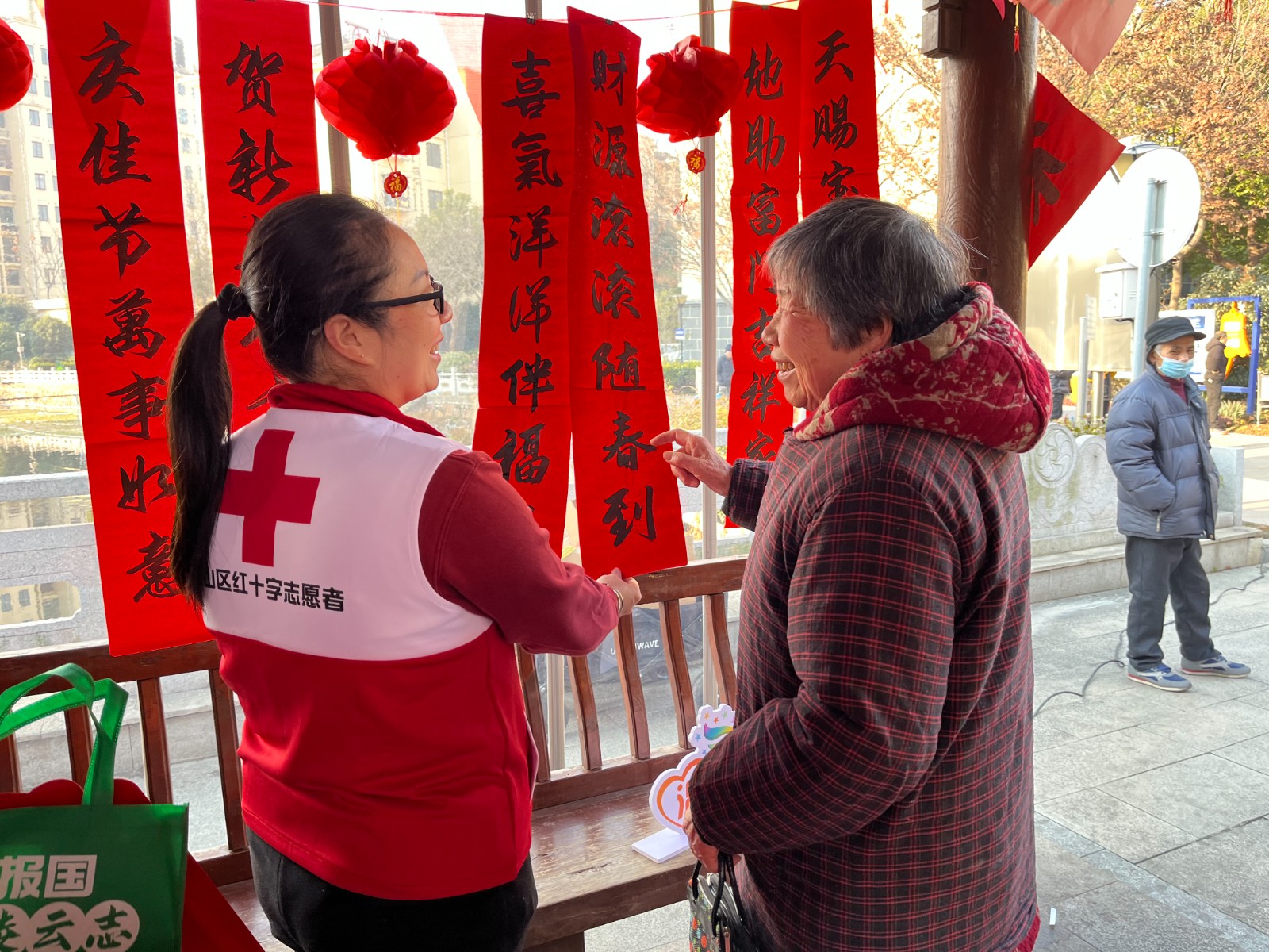 活动现场,翰墨飘香、红纸翻飞,4位知名书法老师挥墨为大家现场写春联,字里行间洋溢着人们对于新年美好远景的期盼与祝福。社区工作人员把一副副寓意吉祥散发着清新墨香的大红对联送到居民手中。居民们拿着红红火火的春联和福字,高兴不已,纷纷表示谢意。收到春联的李阿姨更是兴奋地说:“感谢社区时刻想着我们大家,这字写得真漂亮,这样的春联,比在外面买更有意义。”