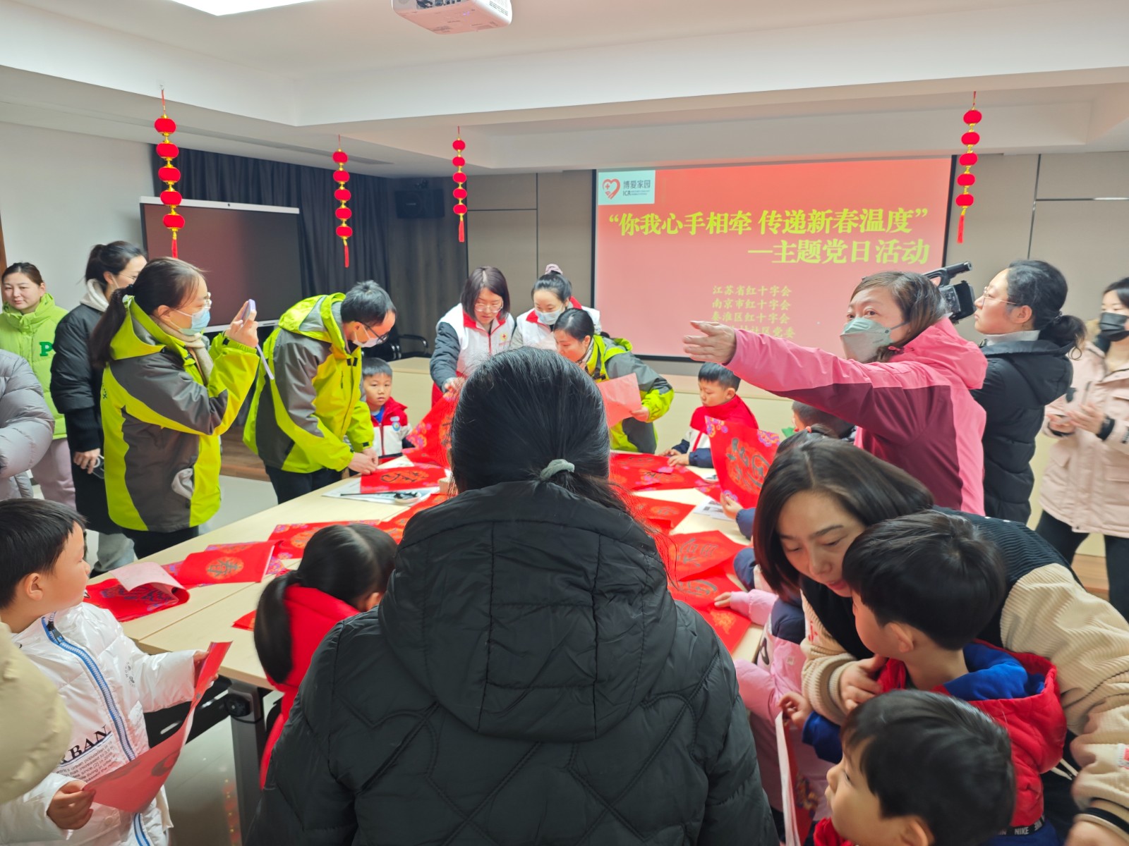 当天活动中,秦淮区红十字赈济救援队队员开展心肺复苏培训;两位书法家现场写福字送祝福;辖区幼儿园小朋友制作龙灯、体验糖画;辖区商会向社区博爱家园进行爱心捐赠;明商集团向博爱家园捐赠米、油各20份;大家一起为辖区困难老人、困难儿童送上春节问候,并为两户困境儿童家庭送上米和油。
