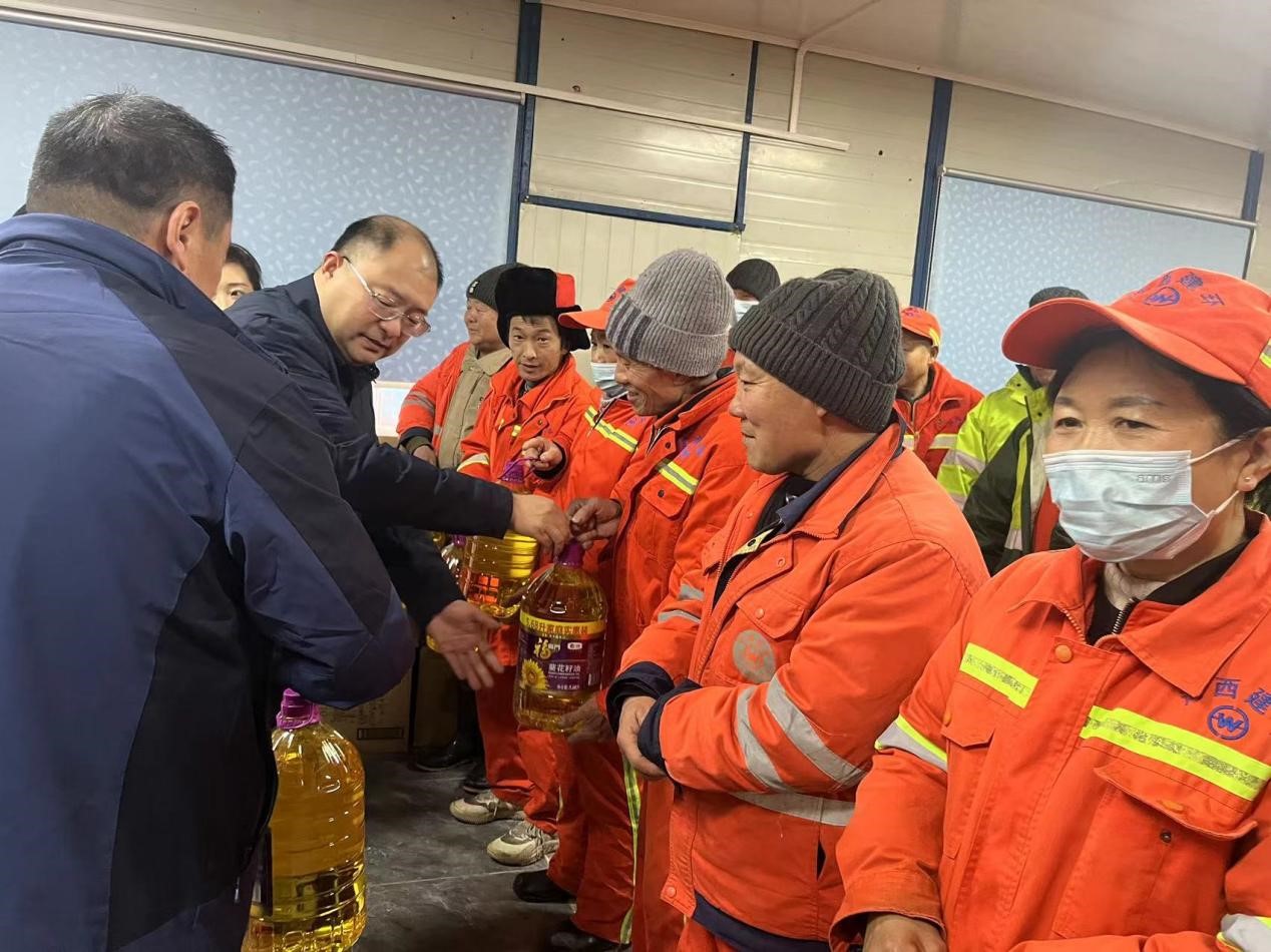 “谢谢你们这一年为城市环境提升付出的辛苦劳动,建邺区干净的马路离不开你们挥洒的汗水”殷晓巍一边将米和油等慰问品送至环卫工代表手中,一边向到场的环卫工人表达谢意和敬意,提前为他们和家人送上美好的新春祝福。拎着慰问品,52岁的一线环卫工代表之一乔广华脸上笑开了花。和早班的工友们一样,乔广华每天早晨四点半开始工作,在很多市民仍未从睡梦中醒来时,他已经完成了自己负责的湖西街和集庆门大街区域的大面积清扫。“虽然平时工作辛苦些,但收到来自社会的关爱非常暖心”他说目前自己居住在公司提供的保洁公寓中,公寓离自己的清扫区域很近,睡眠时间也比以前增多了。因河南老家已无亲人,乔广华今年春节决定留守岗位,为南京在春节期间市容保障贡献力量。据了解,今年南京河西建环公司587名外地户籍的一线环卫工人中有490人选择留在南京过年。