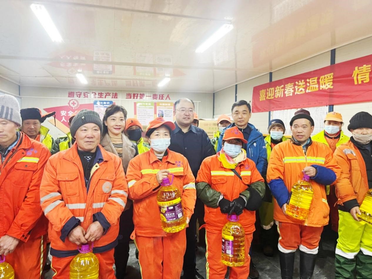 2月1日,建邺区副区长、区红十字会会长殷晓巍和区红十字会常务副会长滕宏明、红十字志愿者一行来到建邺区城管水务集团,为到场的约20名一线环卫工代表送来新春慰问。