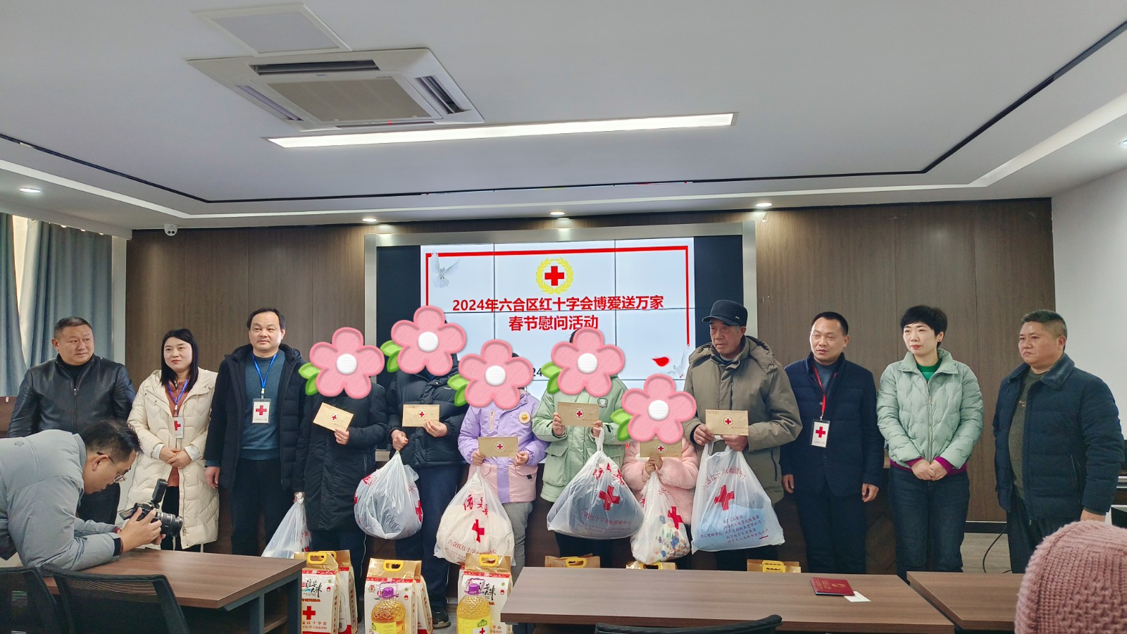 2024年春节前夕,六合区红十字会全面开展“博爱送万家”活动,共慰问我区困境家庭约600户,发放慰问款物约70万元,为广大困难群众带去党和政府以及社会各界爱心人士的关心与关爱,确保他们度过一个欢乐祥和的新春佳节。