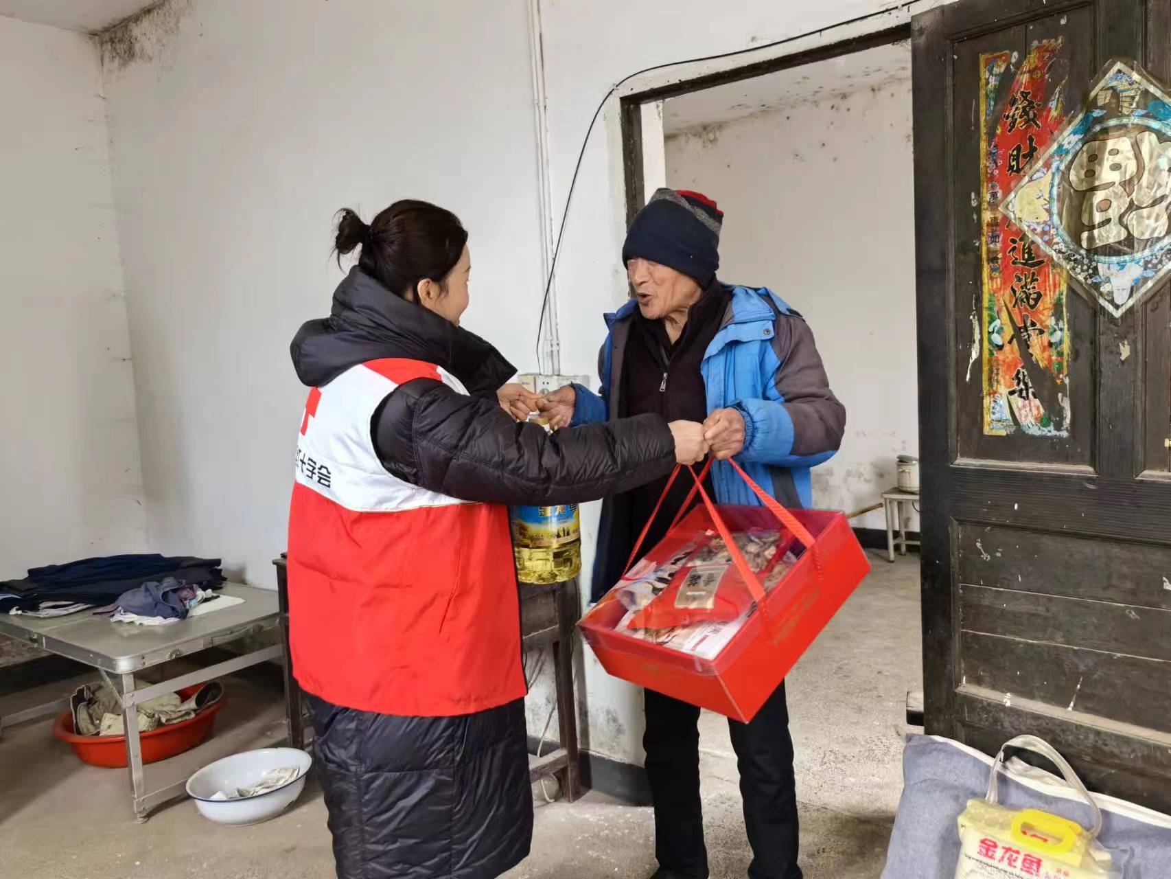 在慰问过程中,红十字志愿者每到一户都会亲切地与他们唠起家常,并询问了他们目前的身体情况、生活状况及存在的困难等。叮嘱他们要保重身体,鼓励他们树立信心,克服困难,生活上如有困难随时找红十字志愿者,将尽最大能力帮助解决。并为他们送去了米、油、坚果大礼包、棉被等慰问品,大家的喜悦之情溢于言表。老人开心地说:“接到社区红十字会志愿者电话,心里特别的暖,感谢你们拿这么多东西来看望我这个独居老人。”看着他们的笑容也感染着在场的每一个人。他们由衷的感慨:“红十字想的太周全啦,还给我们送来了年夜饭的兑换券,让我们独居老人不再感到孤独,国家政策就是好。觉得很开心很温暖,谢谢上面一直关心我们,也祝福大家幸福团圆”