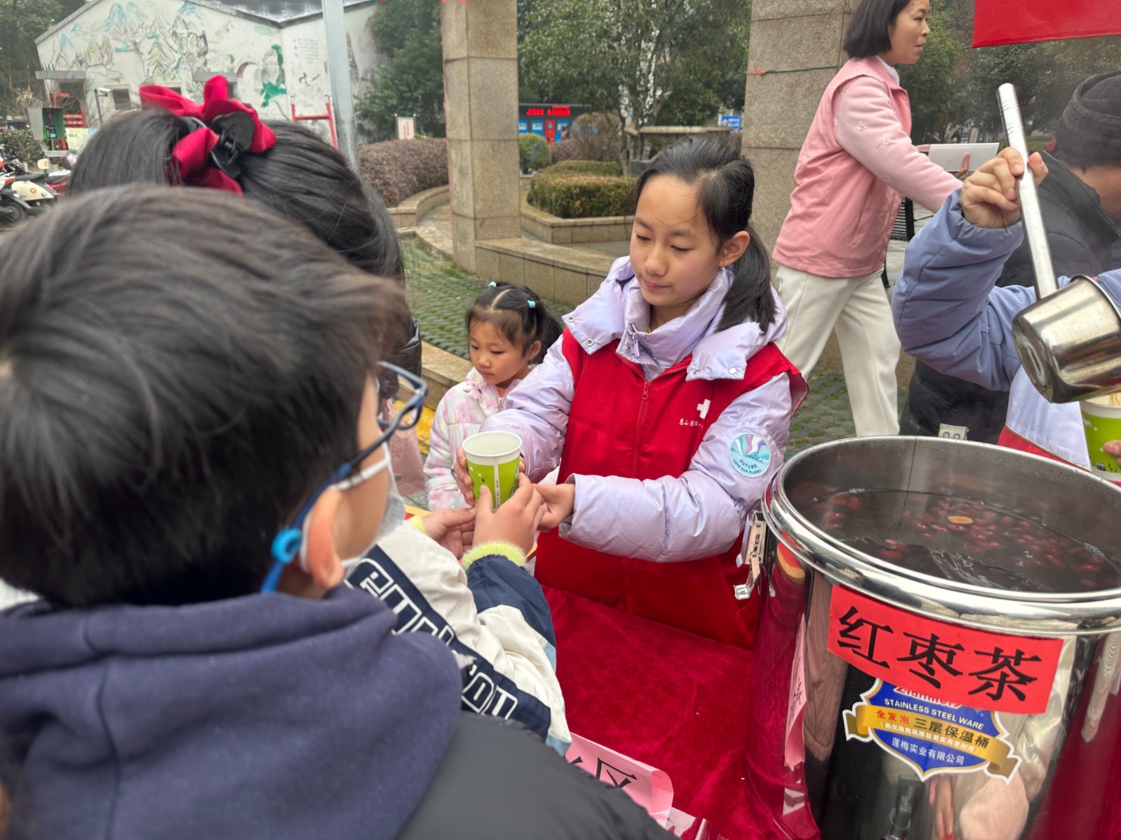 再喝上一口志愿者亲手递上的红枣茶,甜在嘴里,暖到心里。“枣””与“早”谐音,枣茶寓意着“一年之计在于春,一日之计在于晨”。喝了枣茶,新的一年红红火火,有一个“早”的开始!