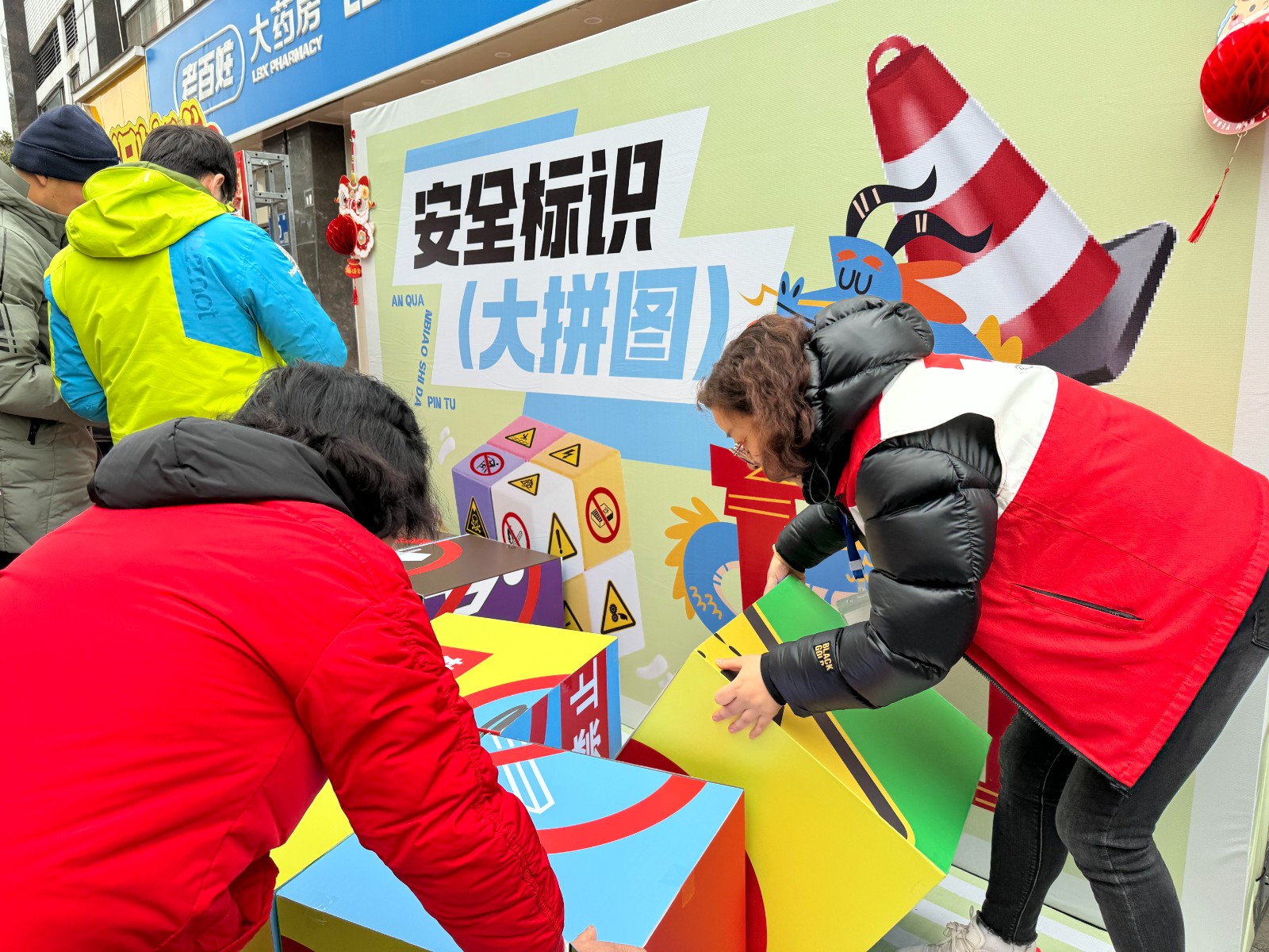 齐拼图 知安全。小朋友们齐刷刷的“扎堆”在了安全标识立体拼图的活动场地,小选手们一个个专心致志地用稚嫩的小手翻动大大的立体拼图,家长们在一旁悉心指导,帮助孩子们更好地理解各种安全标识,同时培养他们的动手能力和创造力,在他们懵懂的心灵种下一颗颗“安全”的种子,完成后,社区为孩子们送上安全大礼包,把“安全”带回家。这不仅仅是一份礼物,更是教育与关怀的象征。希望孩子们能够牢记这份关爱,时刻保持警惕,保护好自己的安全,度过一个幸福的新年。