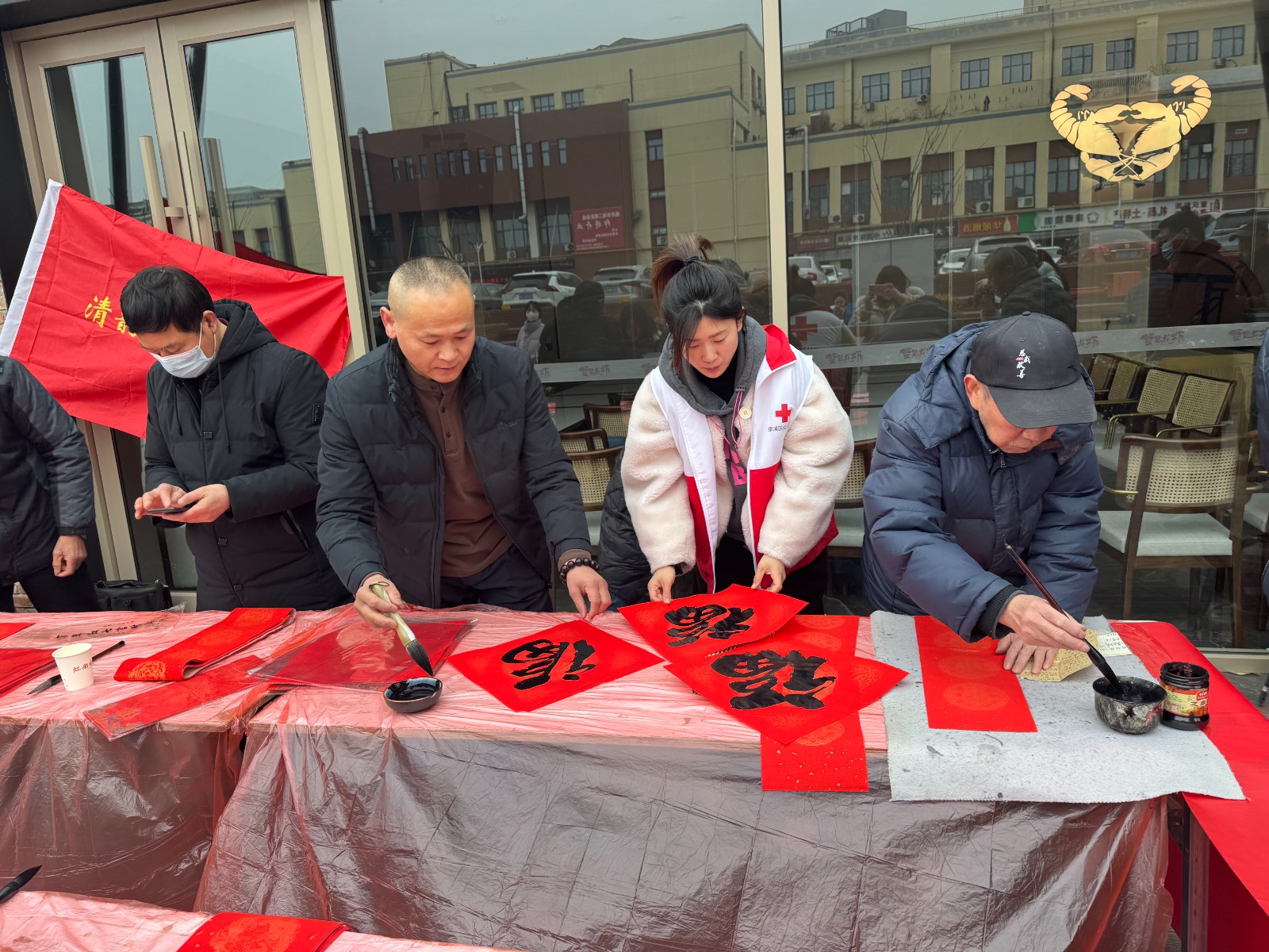 笔酣墨饱,新年祝福跃然纸上;凤翥鸾回,尽显千年中华古韵。为了让大家感受民俗魅力、传承民俗文化,1月27日上午,惠山街道红十字会组联合清韵书画院组织的“赠春联”活动在无锡红船场园区顺利开展。活动以“惠聚八方才 红船展风采”为主题,通过“梁友聚力”,推动资源共享,在传承城市精神中绘就幸福画卷。