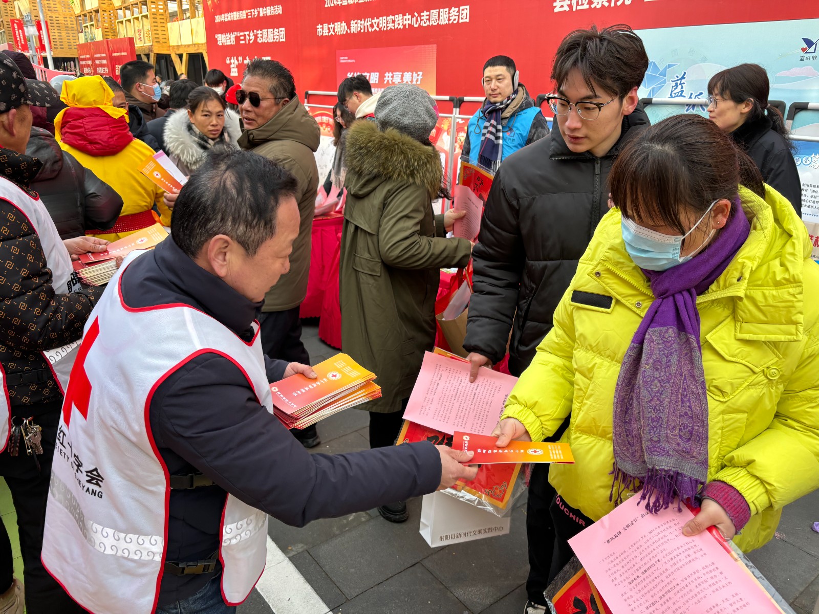 为深入学习宣传贯彻党的二十大精神,推动乡村振兴,营造全社会关注农业、关心农村、关爱农民的浓厚氛围,2月5日,2024年盐城市暨射阳县“三下乡”集中服务活动在射阳县海河镇举行。县红十字会作为此次“三下乡”服务团成员单位之一,现场开展红十字特色服务,将“人道、博爱、奉献”的红十字精神、急救技能等送到百姓家门口。