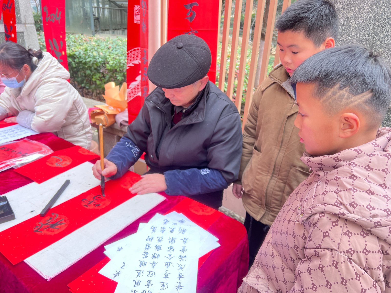 红十字志愿者们早早地准备好笔墨纸砚,等待居民们的到来。在志愿者的指导下,社区老党员和青少年们共同为居民们免费写春联、送祝福。一副春联、一张“福”字,不仅增添了节日的喜庆,一笔一画,更是对传统文化和家风家训的最好传承,也传递了人道、博爱、奉献的红十字精神。